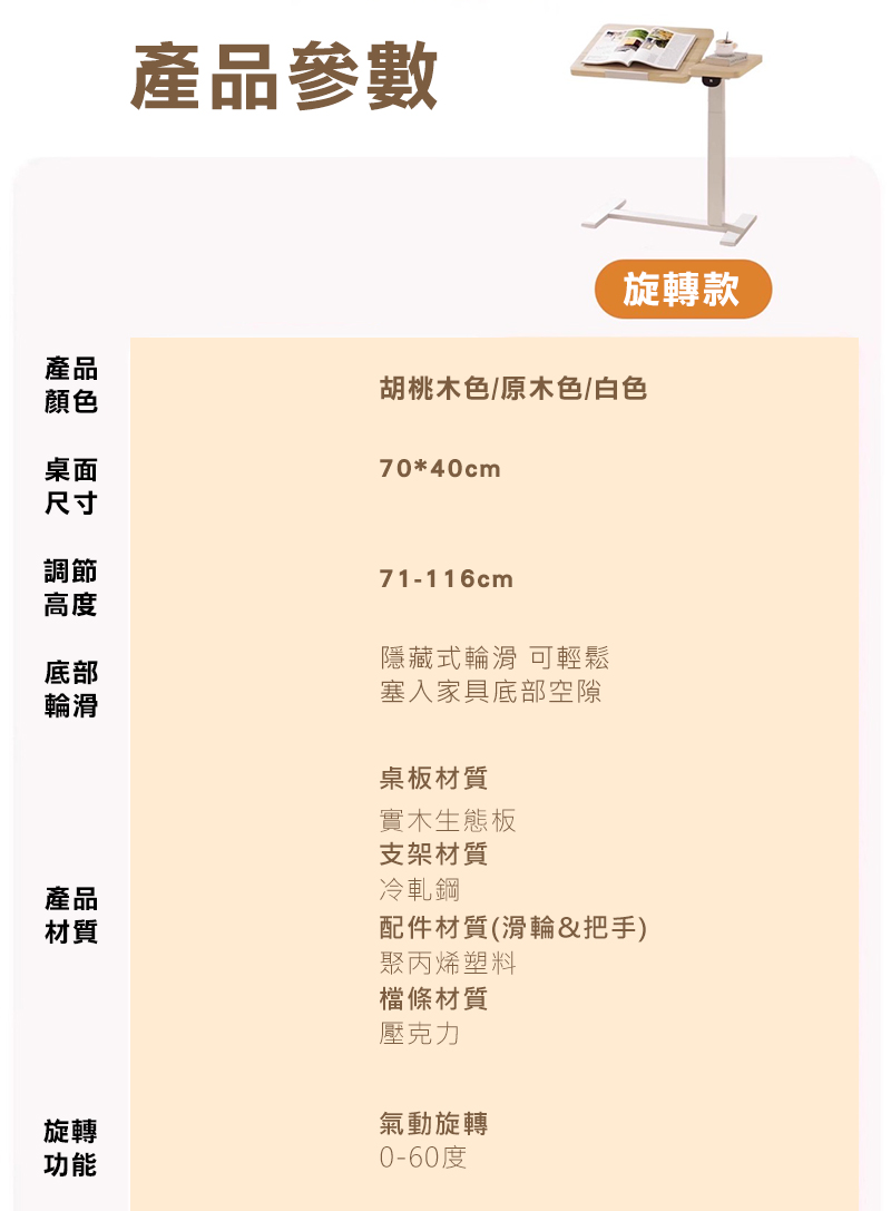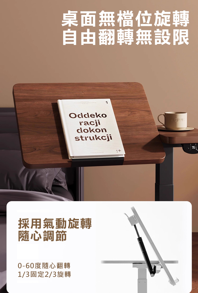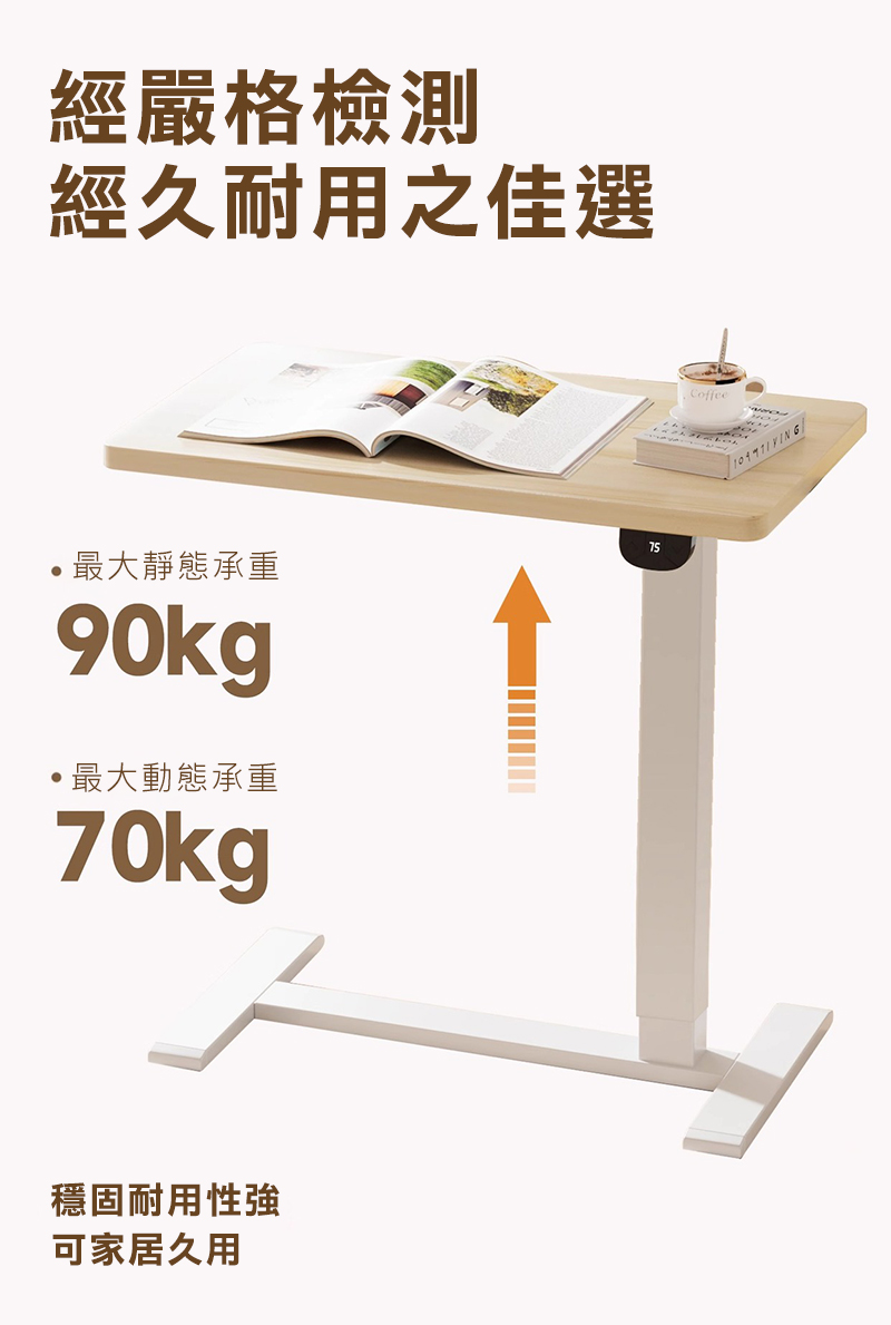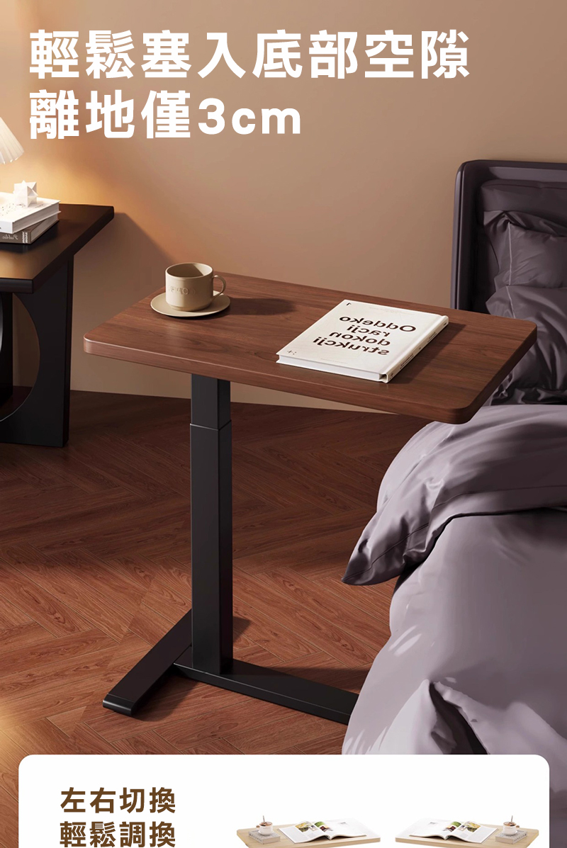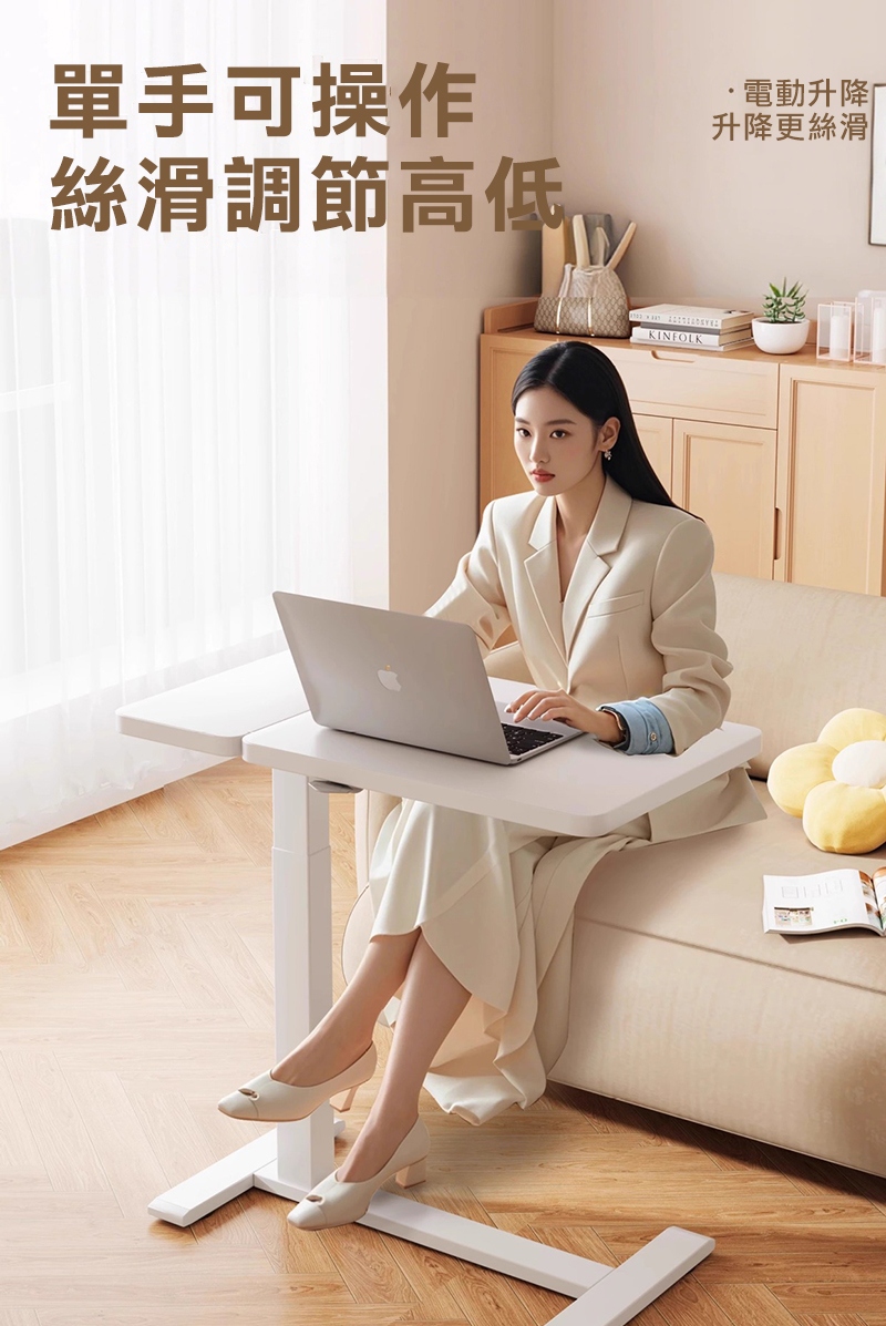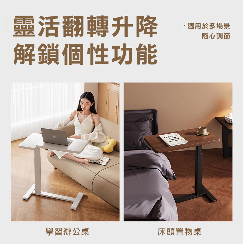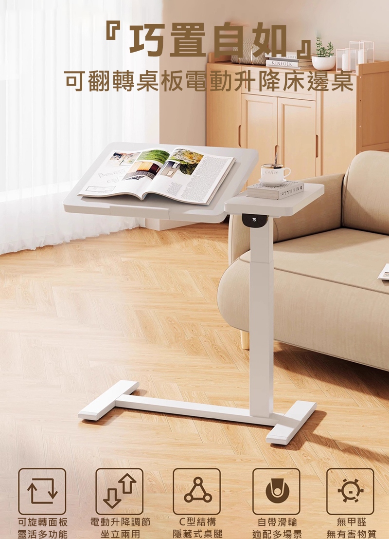 Cooyee 可翻轉桌板電動升降床邊桌 筆電桌 讀書桌 閱讀桌 可翻轉 C型低底盤