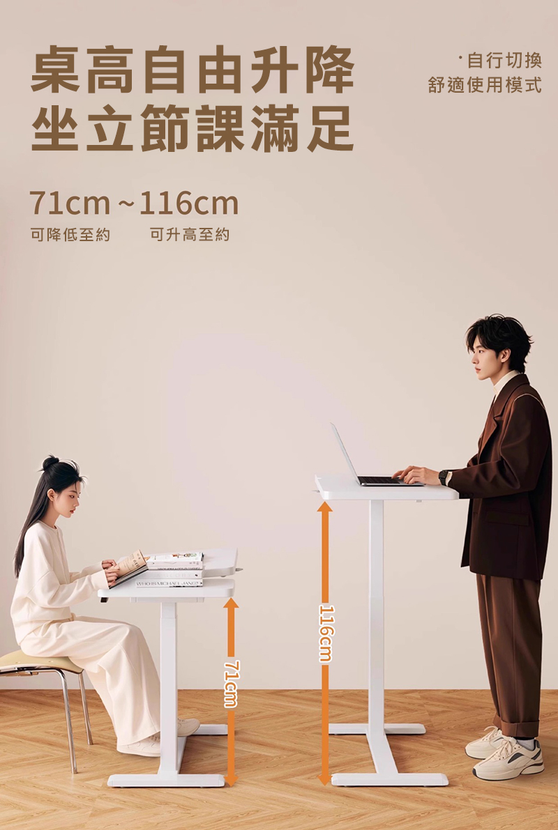 .桌面高度自由升降,71cm~116cm