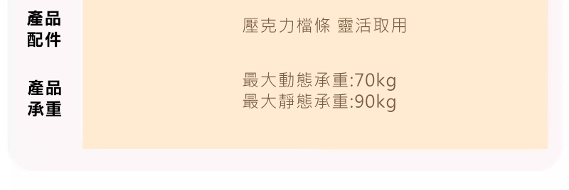 .最大動態承重:70KG、最大靜態承重:90KG