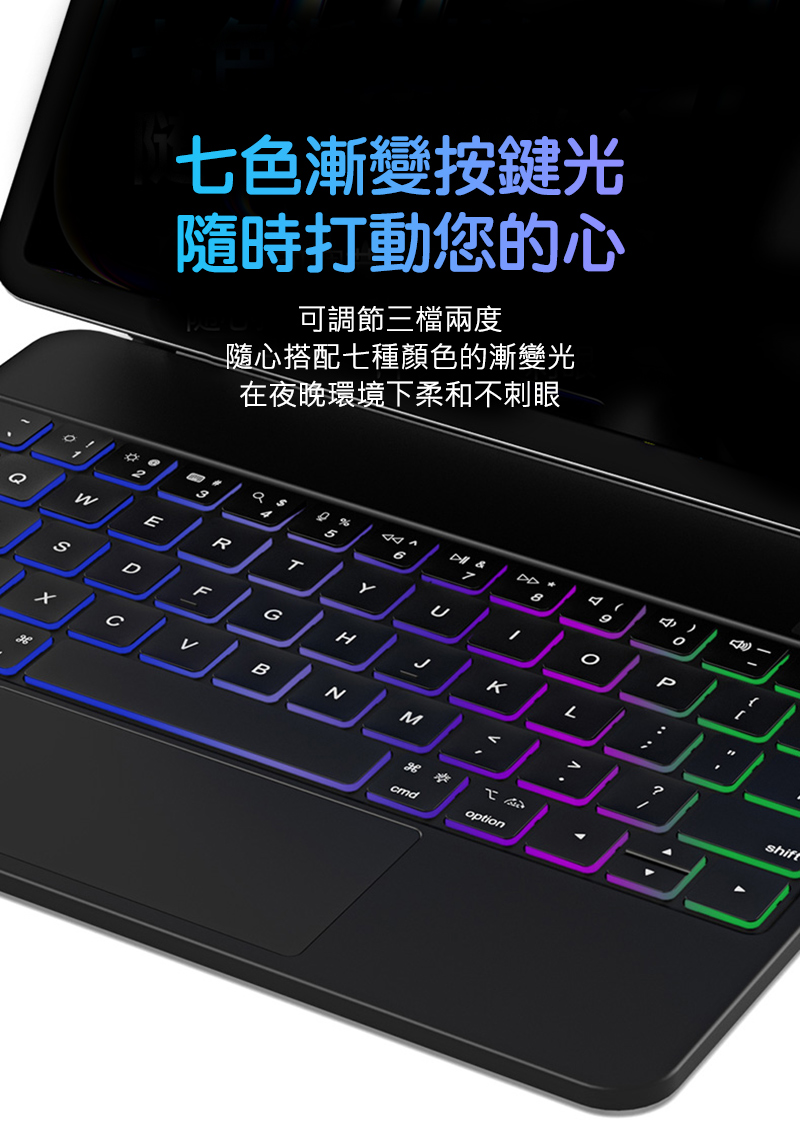 .可調節三段亮度,隨心搭配七種顏色的漸變光