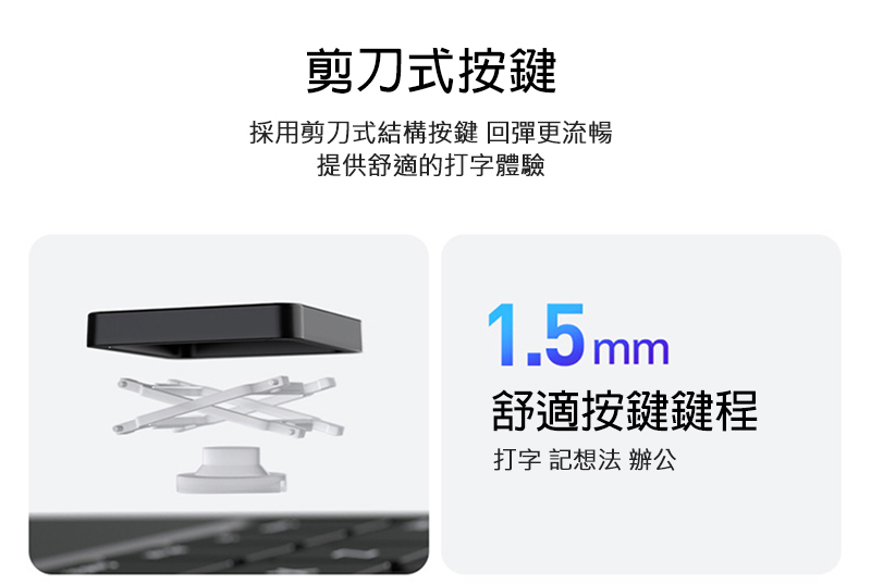.剪刀式按鍵,回彈更流暢,提供舒適的打字體驗