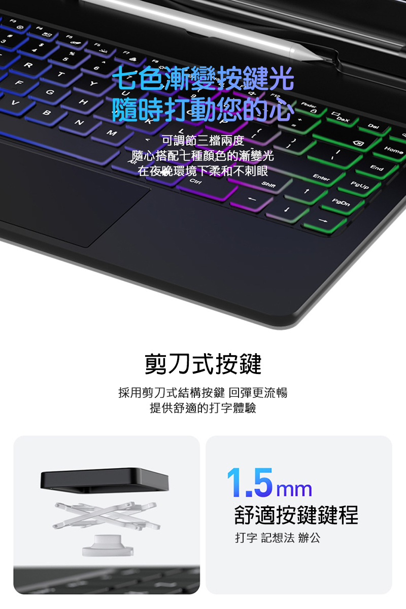 .剪刀式按鍵,回彈更流暢,提供舒適的打字體驗