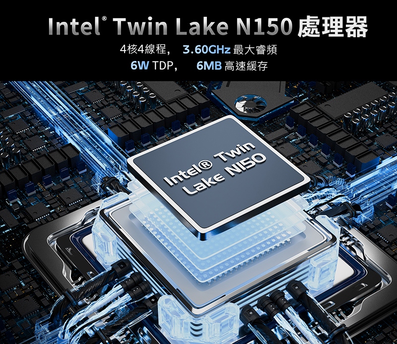 .Intel Twin Lake 處理器 N150 4核4執行緒 3.6GHz, 6W TDP, 6MB 快取記憶體