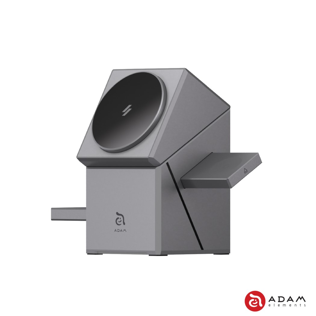 亞果元素 Mag Qube Qi2 智慧型旋轉式三合一磁吸無線充電座-鈦