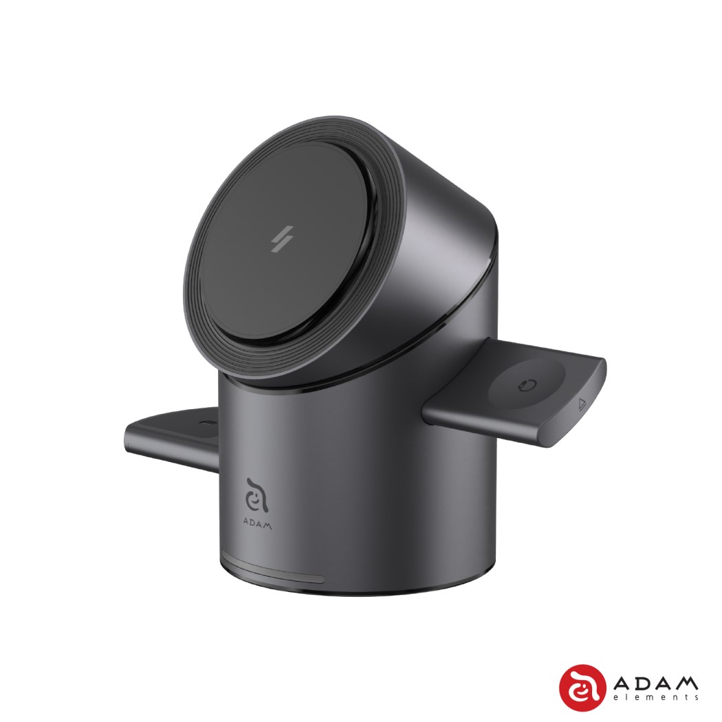 亞果元素 Mag Tube Qi2 智慧型旋轉式三合一磁吸無線充電座-灰