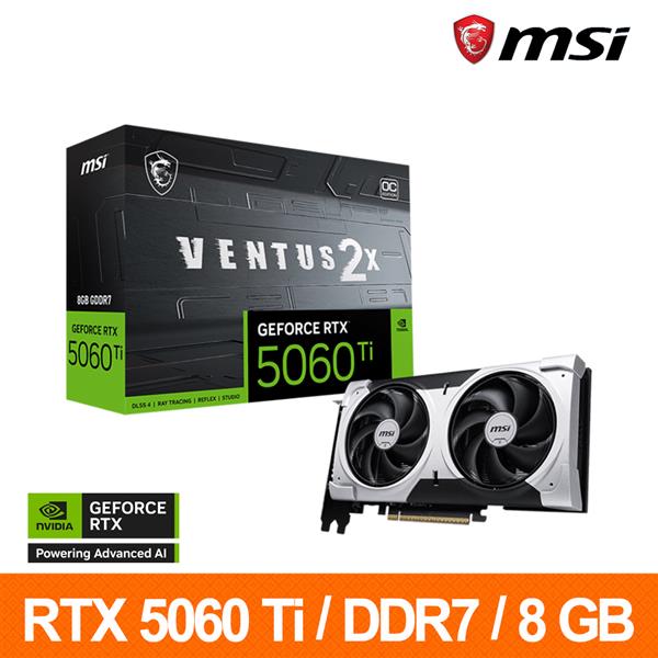 微星 MSI RTX 5060 Ti 8G VENTUS 2X OC PLUS 顯示卡
