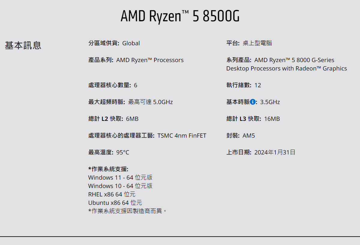 🔺原廠型號:Ryzen 5 8500G