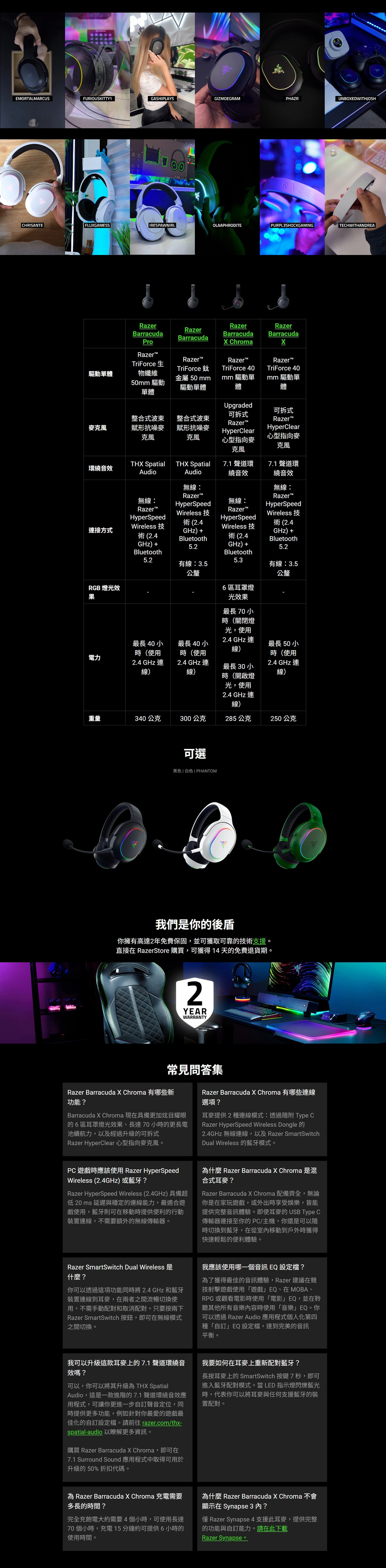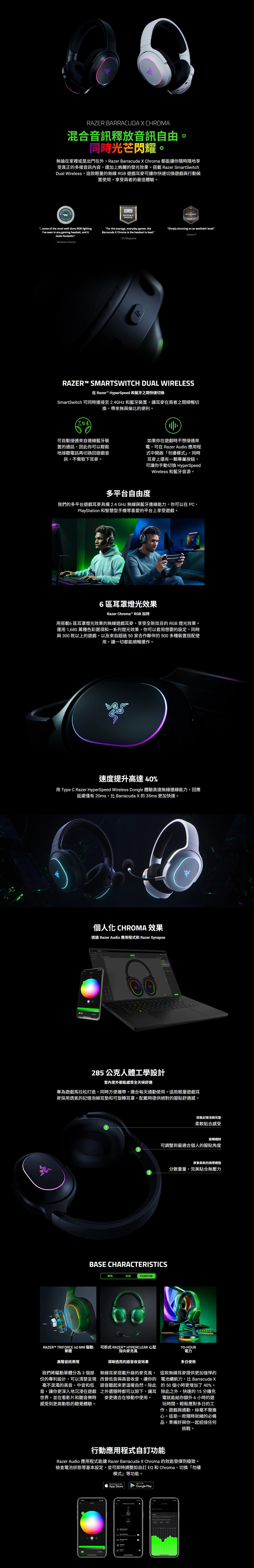雷蛇 Razer 梭魚 Barracuda X Chroma無線耳機麥克風Phantom Green Edition ( RZ04-05220300-R3M1-UT )