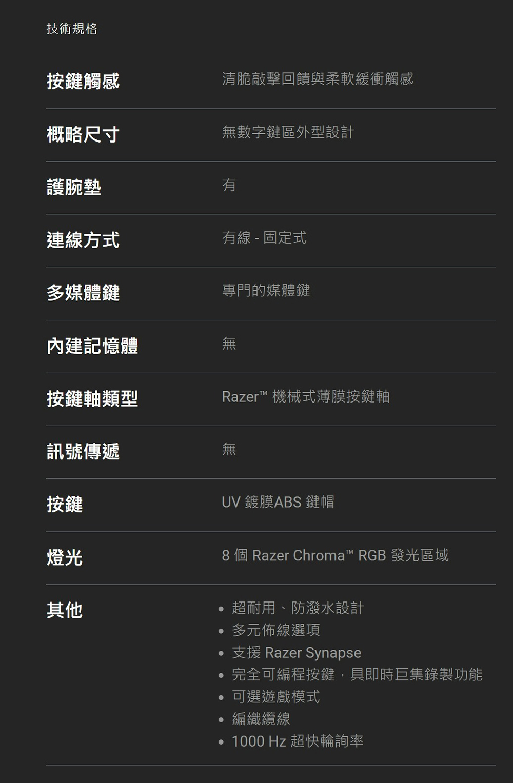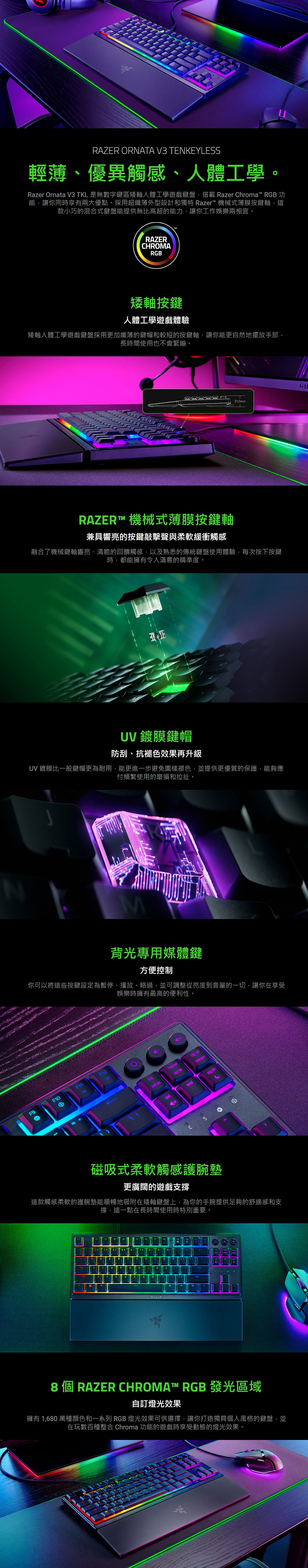 雷蛇 Razer 雨林狼蛛 V3 短軸鍵盤 ( RZ03-04881400-R3T1-UT )