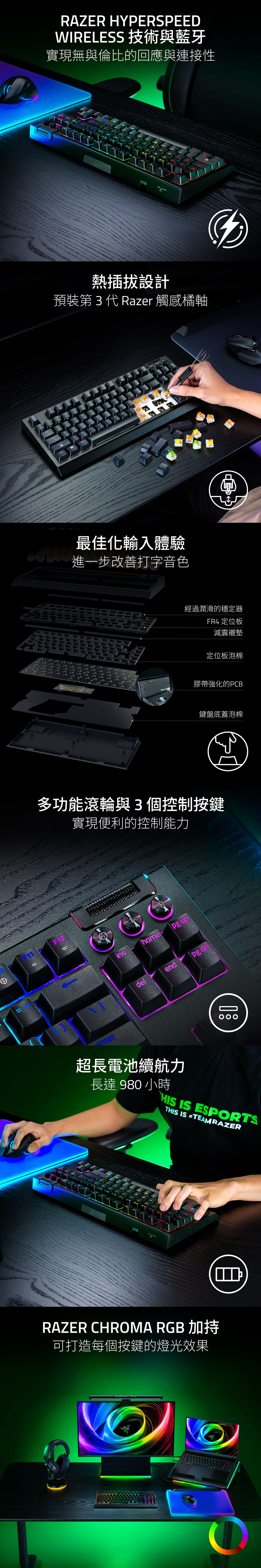 雷蛇 Razer 黑寡婦蜘幻彩版無線鍵盤V4 TKL-橘軸(英文) ( RZ03-05480100-R3M1-UT )