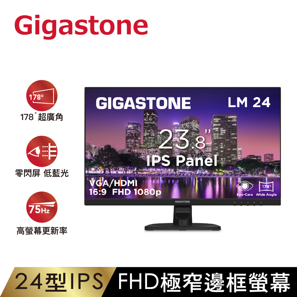 GIGASTONE LM-24FF2 24型 螢幕🔸1920 × 1080 @ 75Hz🔸FHD🔸IPS🔸低藍光/零閃屏🔸內建喇叭