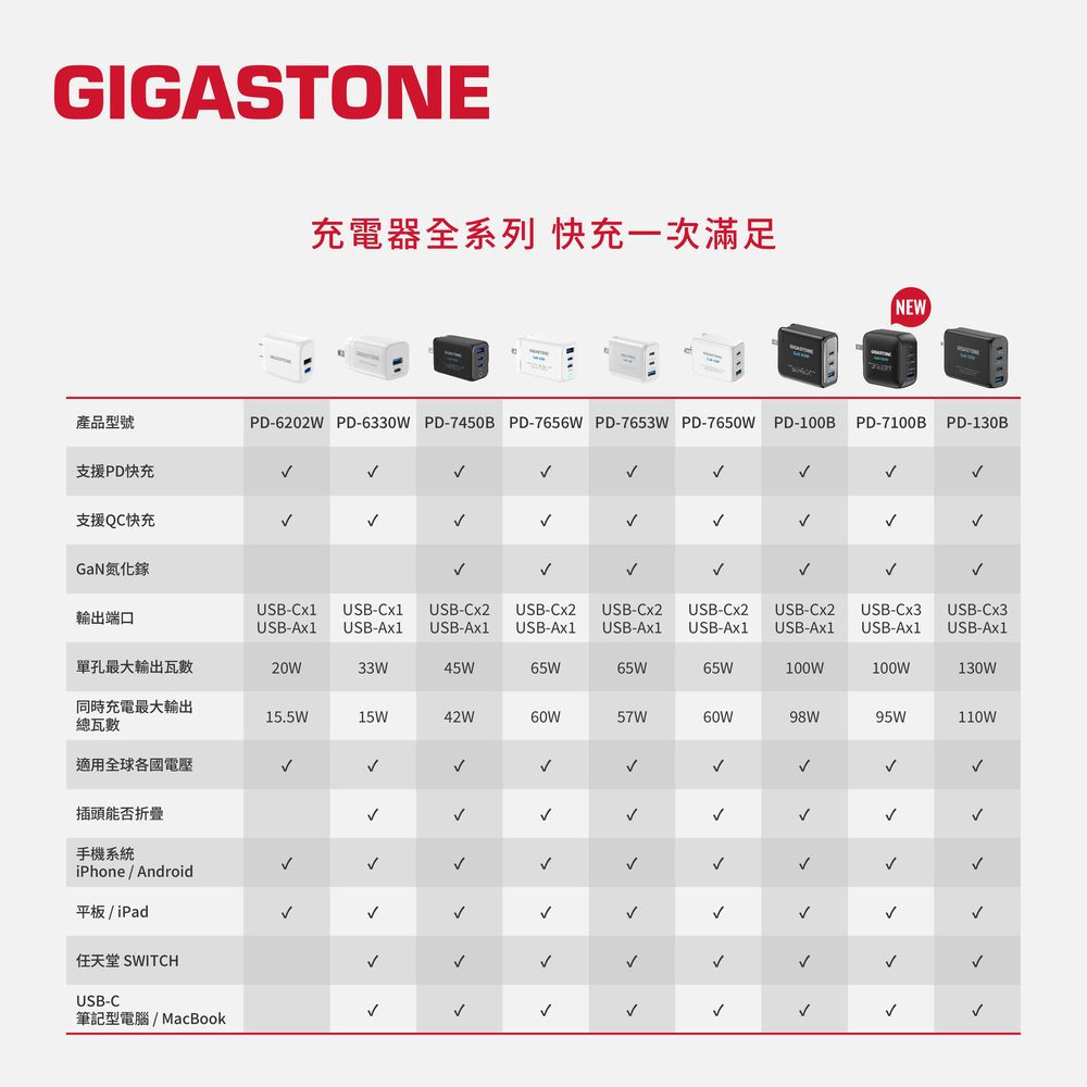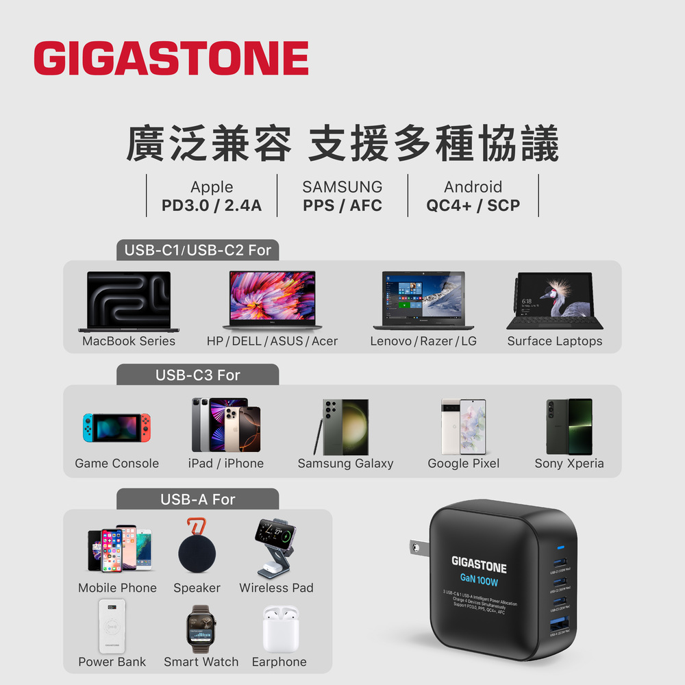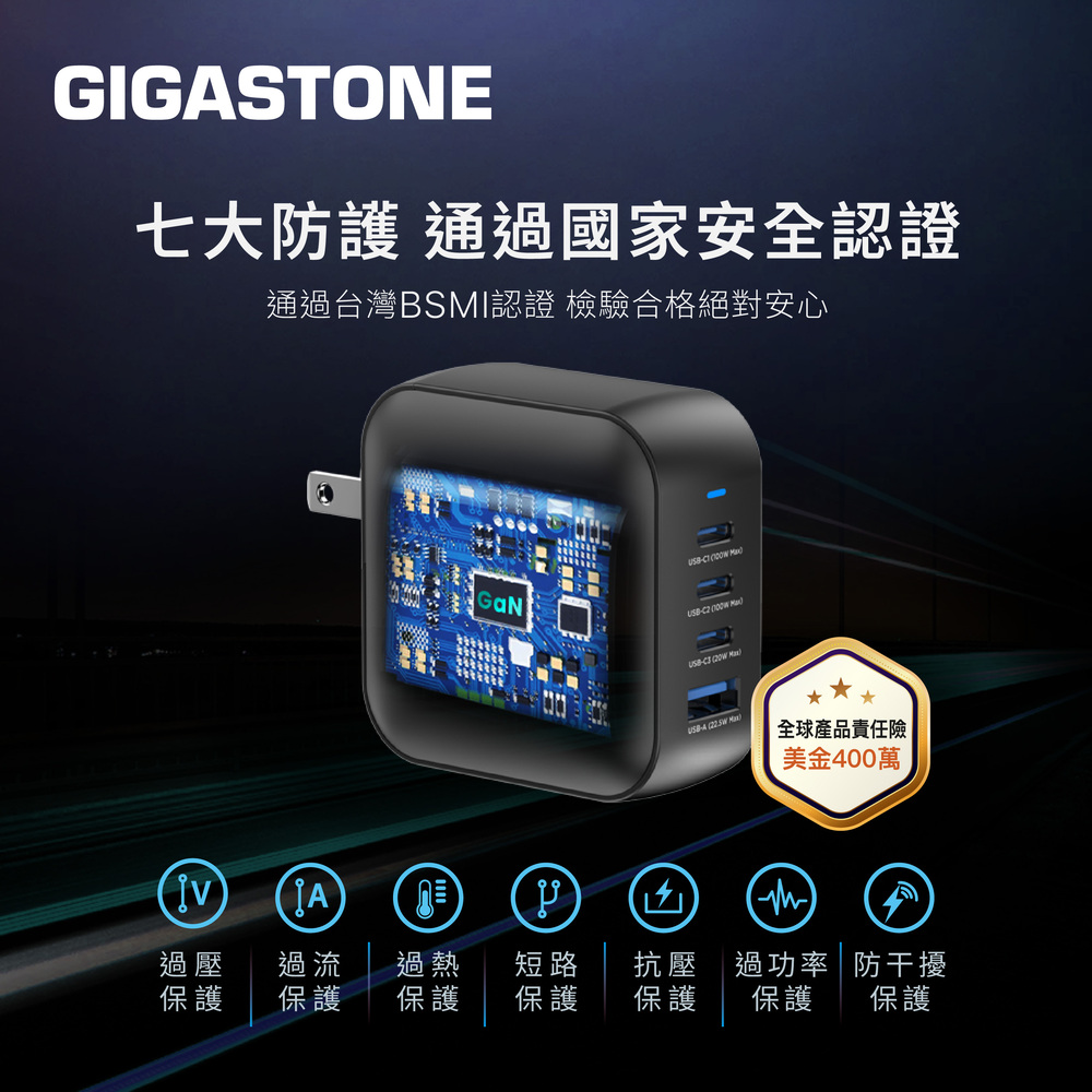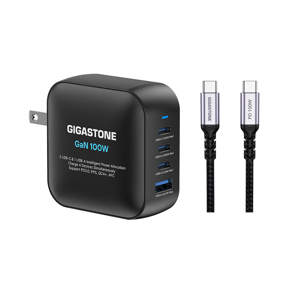 GIGASTONE PD-7100B+CC-7800B 100W氮化鎵GaN四孔急速充電器組