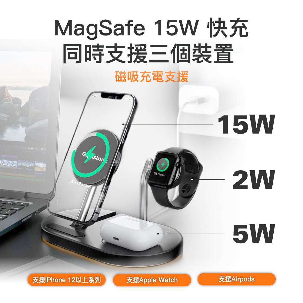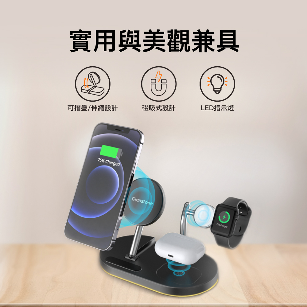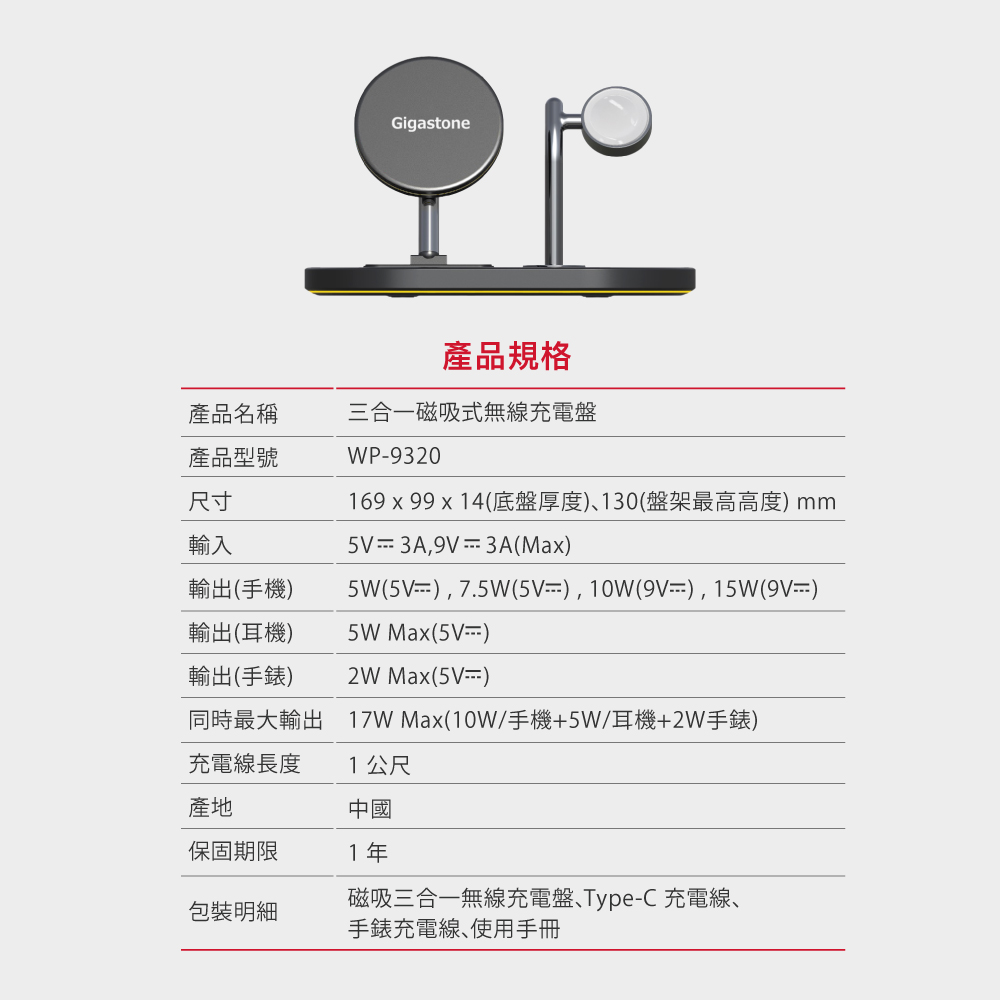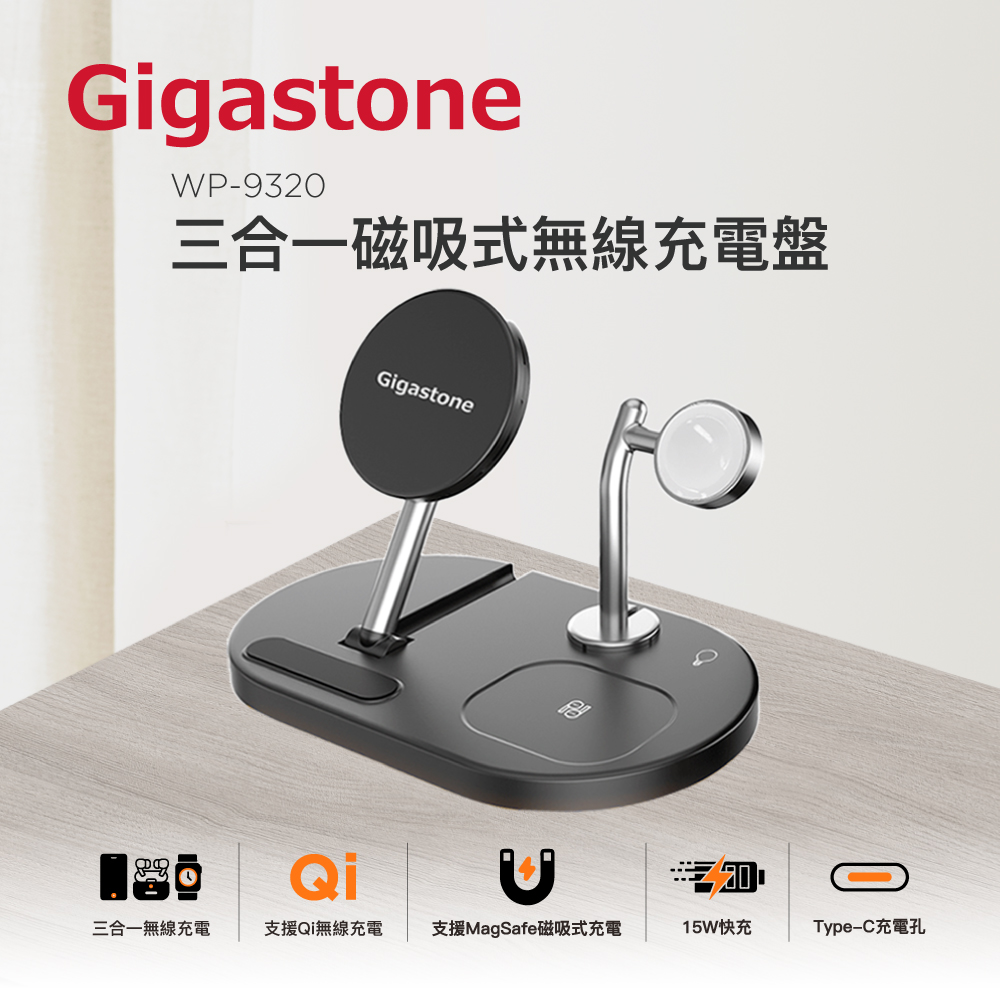 GIGASTONE WP-9320B 15W三合一磁吸式無線充電盤