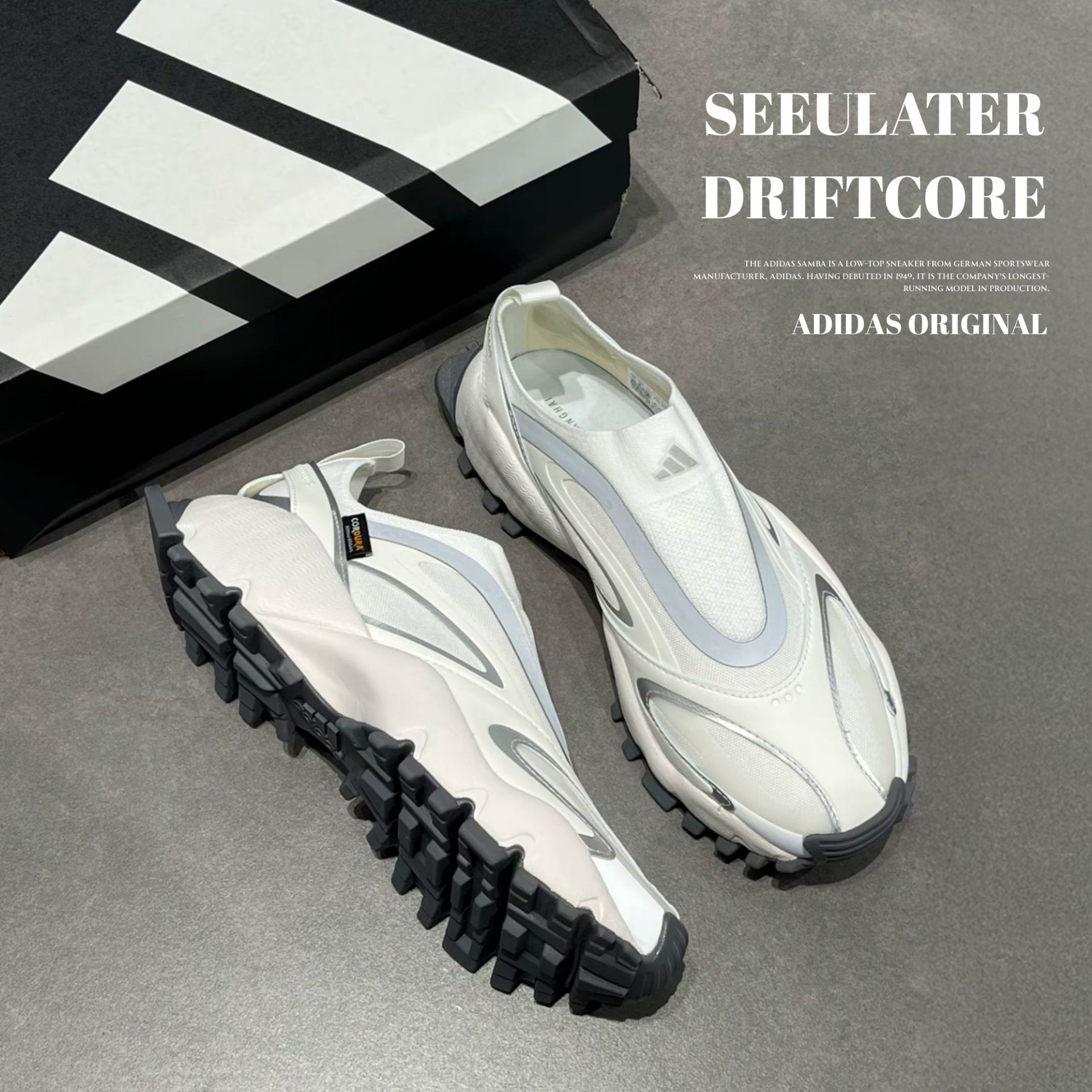 NICEDAY 代購 Adidas SEEULATER DRIFTCORE 白 白灰 白銀 一腳蹬 輕便 無鞋帶 KJ9098