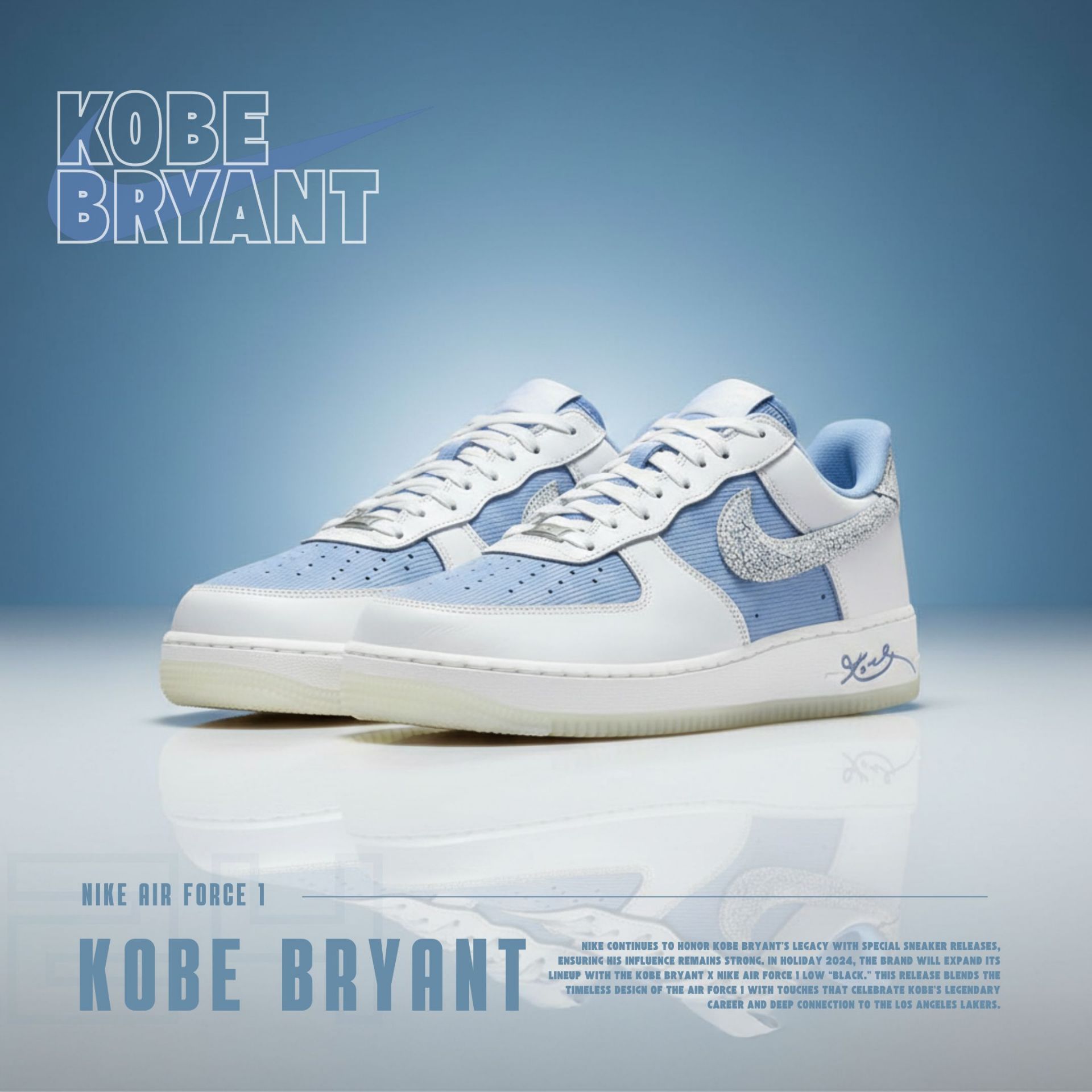 NICEDAY 代購 Kobe Bryant x Nike Air Force 1 冠軍之城 科比 老大 藍白 白 銀勾 IM0583-400
