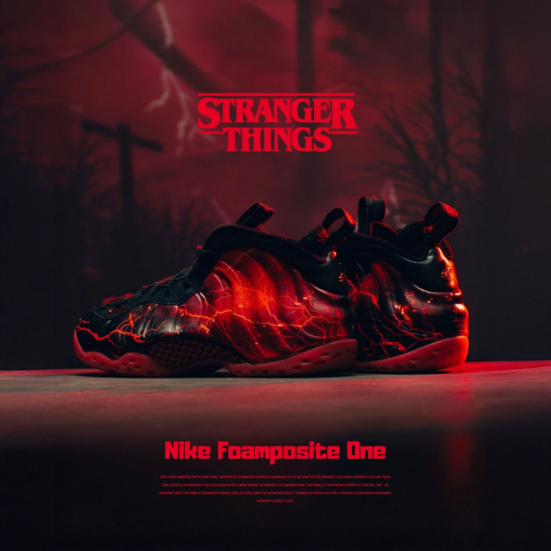 NICEDAY 代購 Stranger Things x Nike Air Foamposite One 怪奇物語 紅 紅黑 黑紅 閃電 怪物 IR7336-001