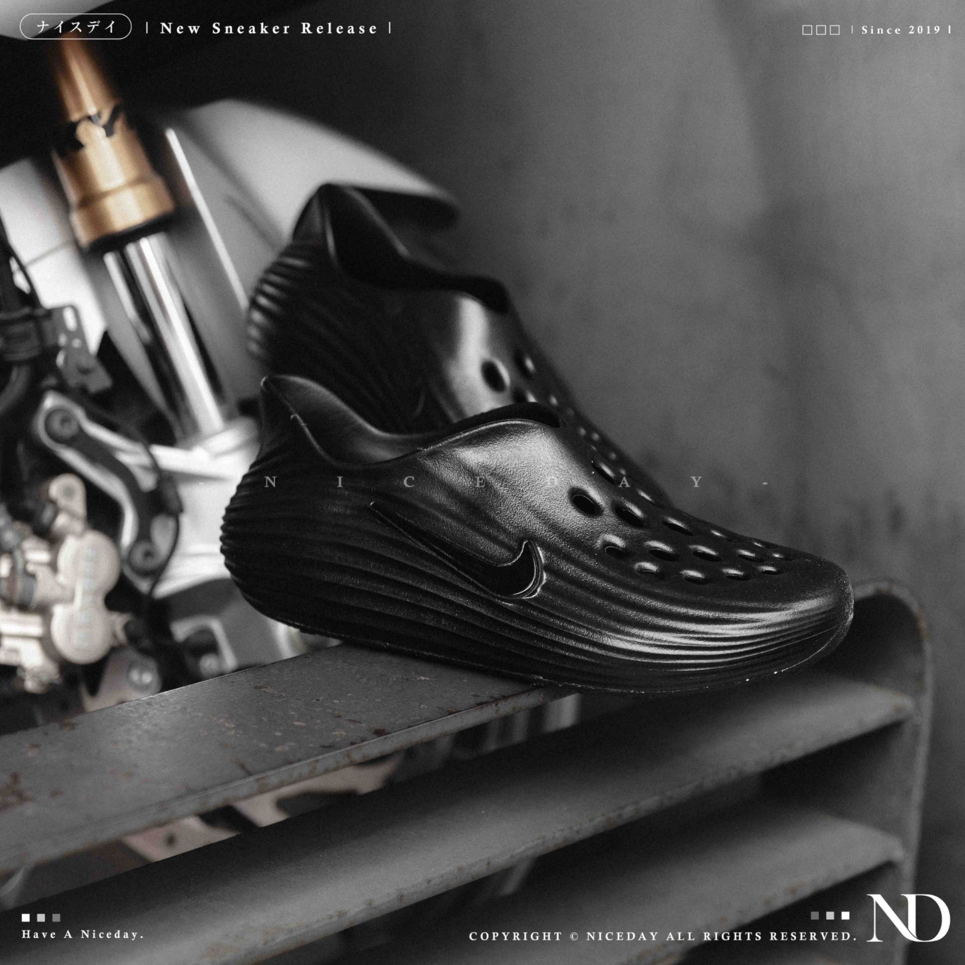 NICEDAY 現貨 Nike ReactX Rejuven8 防水拖 黑 全黑 黑色 拖鞋 洞洞 HV5060-001