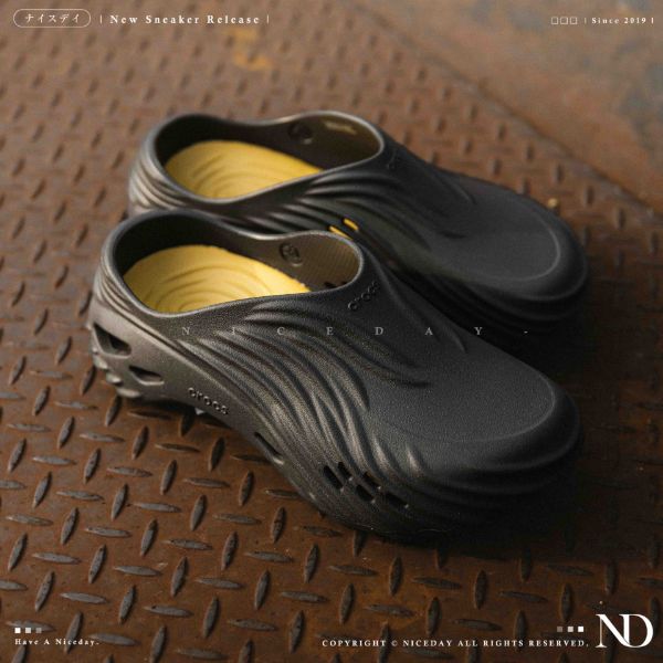 NICEDAY 現貨 Crocs Classic Crush 洞洞鞋 厚底 踩屎感 波波 旋風 天幕 穆勒鞋 黑色 210521-1FT