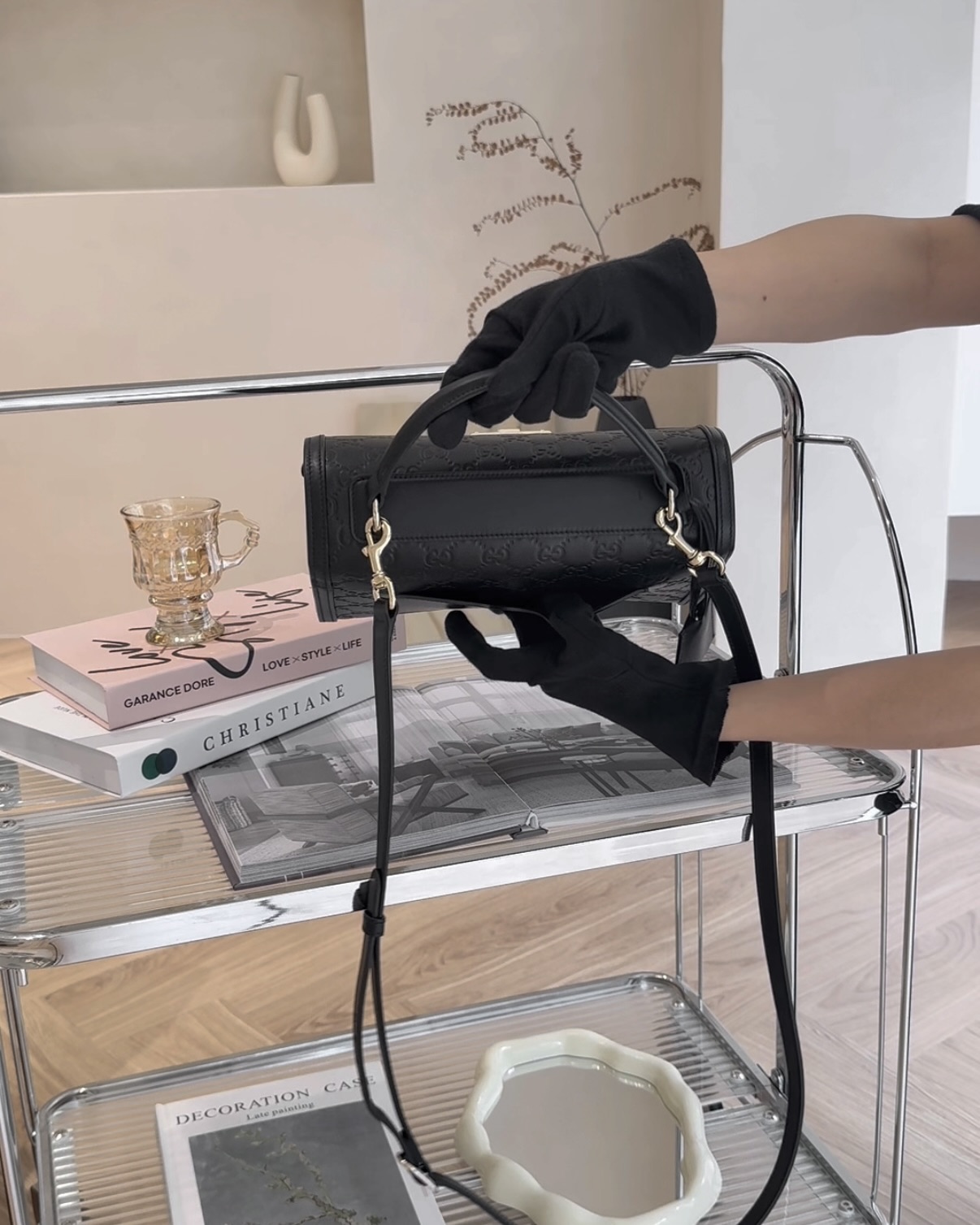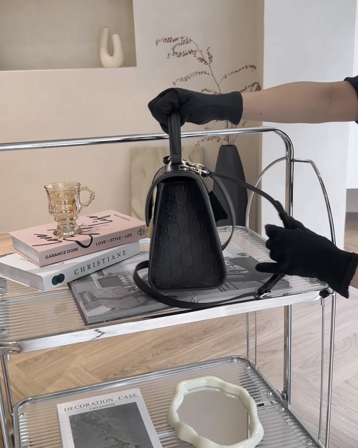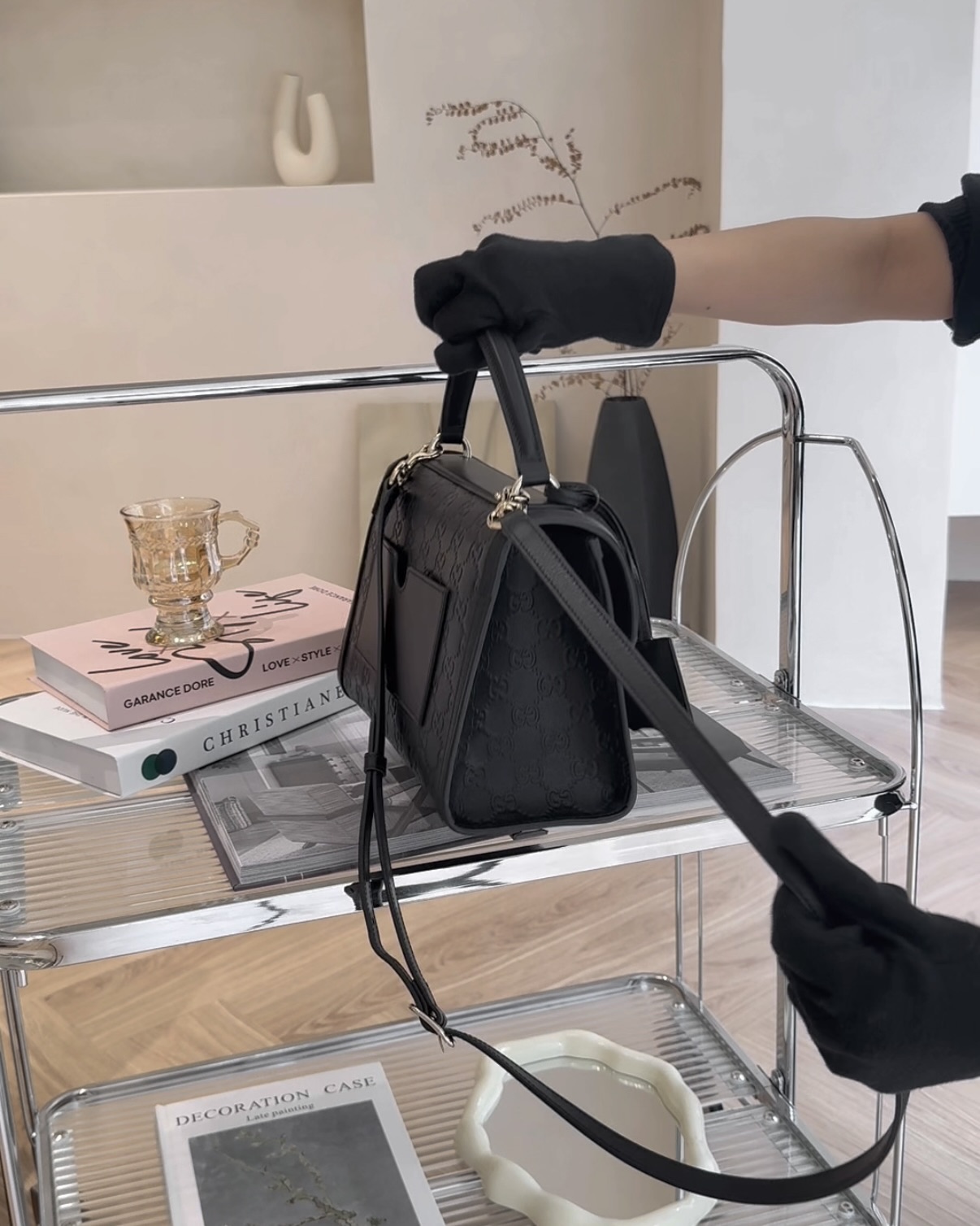 【GUCCI】PADLOCK 手提單肩包 中號 黑色壓紋老花
