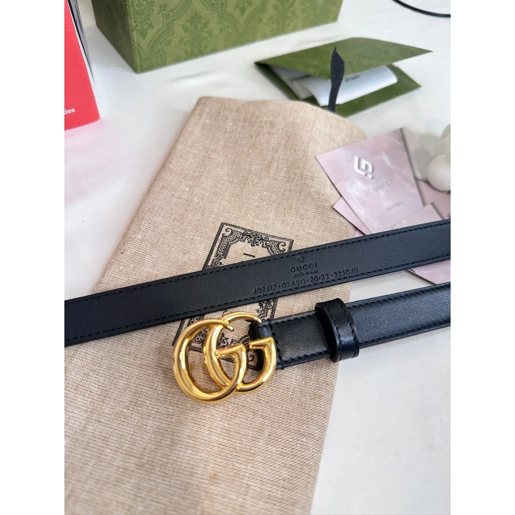 Gucci經典金色雙G LOGO 皮帶 細版腰帶 85cm