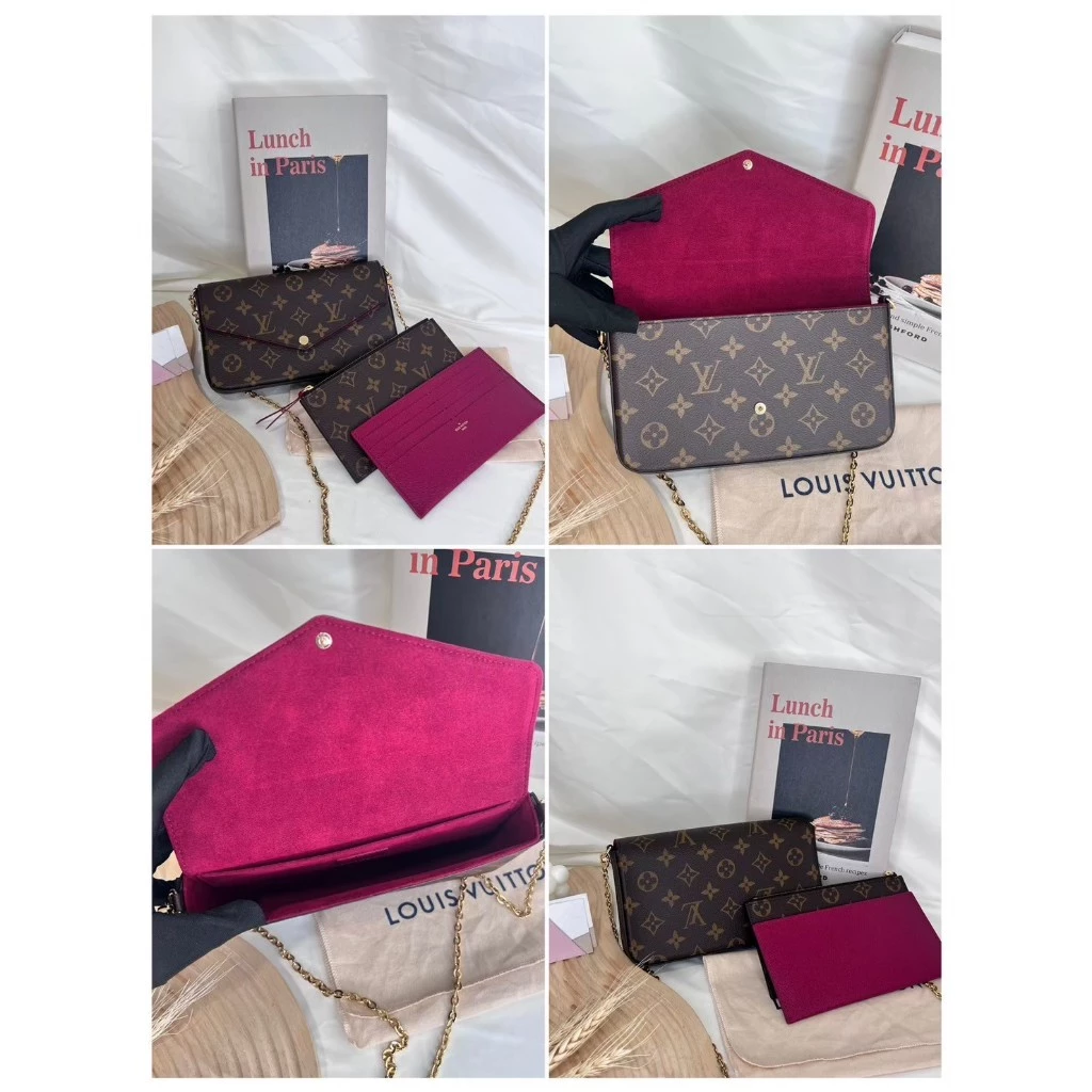 商品特色:內有1個暗袋 附1個卡片夾 1個拉鍊零錢包 都可拿出單獨使用 附鏈背帶 背帶可拆 附購買明細