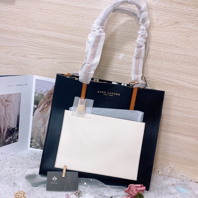 MJ 鎖頭 方包 撞色托特包 肩背包(大款)