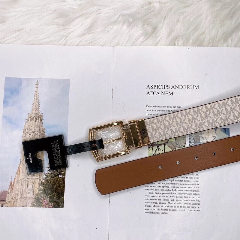MK 滿版logo 針釦皮帶 雙面皮帶
