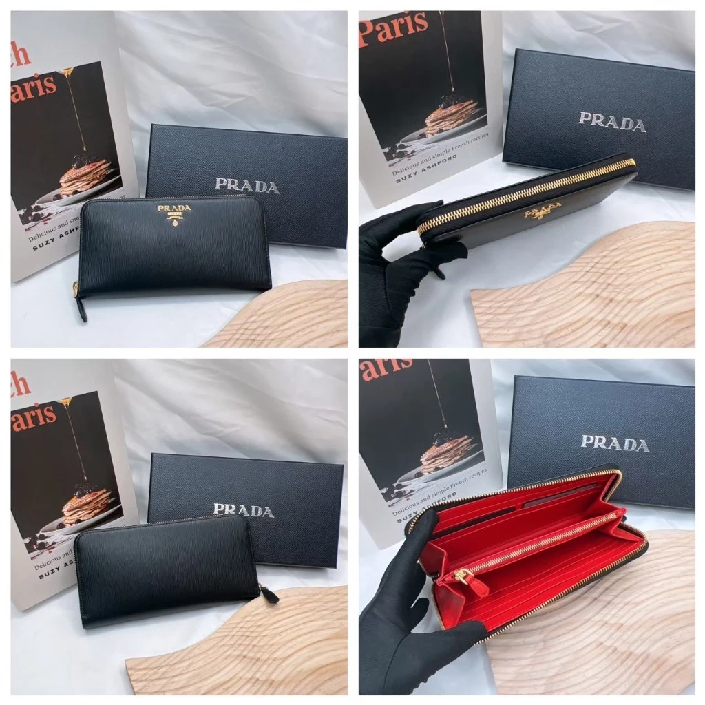 PRADA 拉鍊長夾 經典LOGO 水波紋拉鍊長夾 情人節