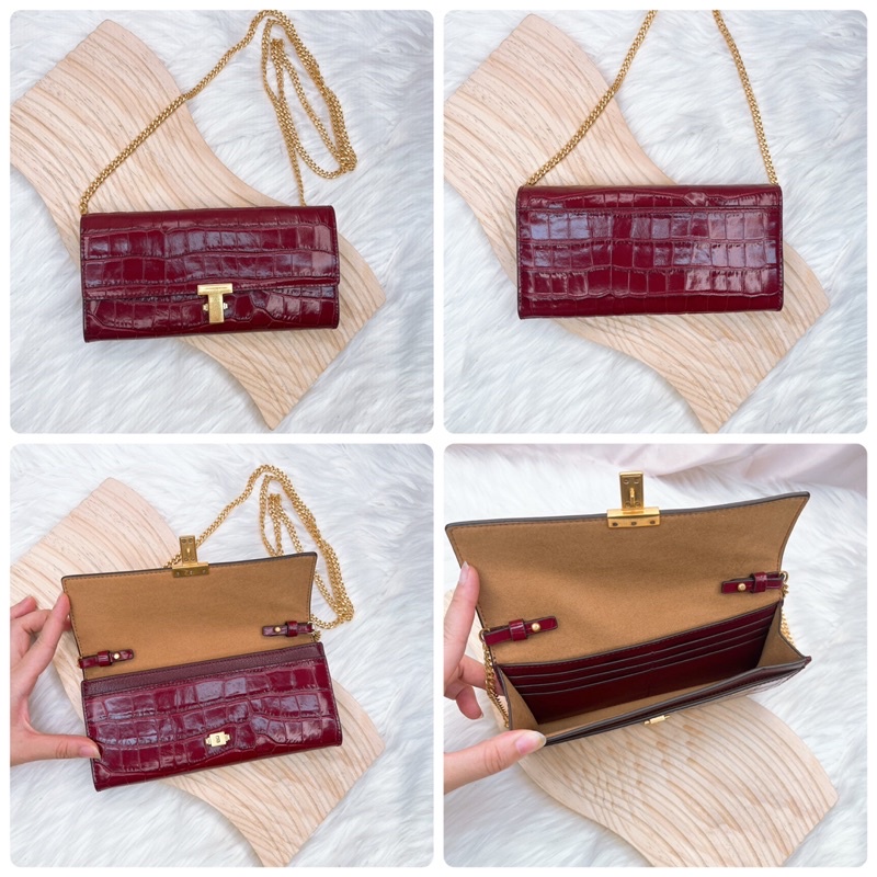 商品特色:內有6卡層 1個大鈔票層 1個暗袋 前後各有1個暗袋可肩背 鏈背帶 背帶可拆 可斜背 可當長夾