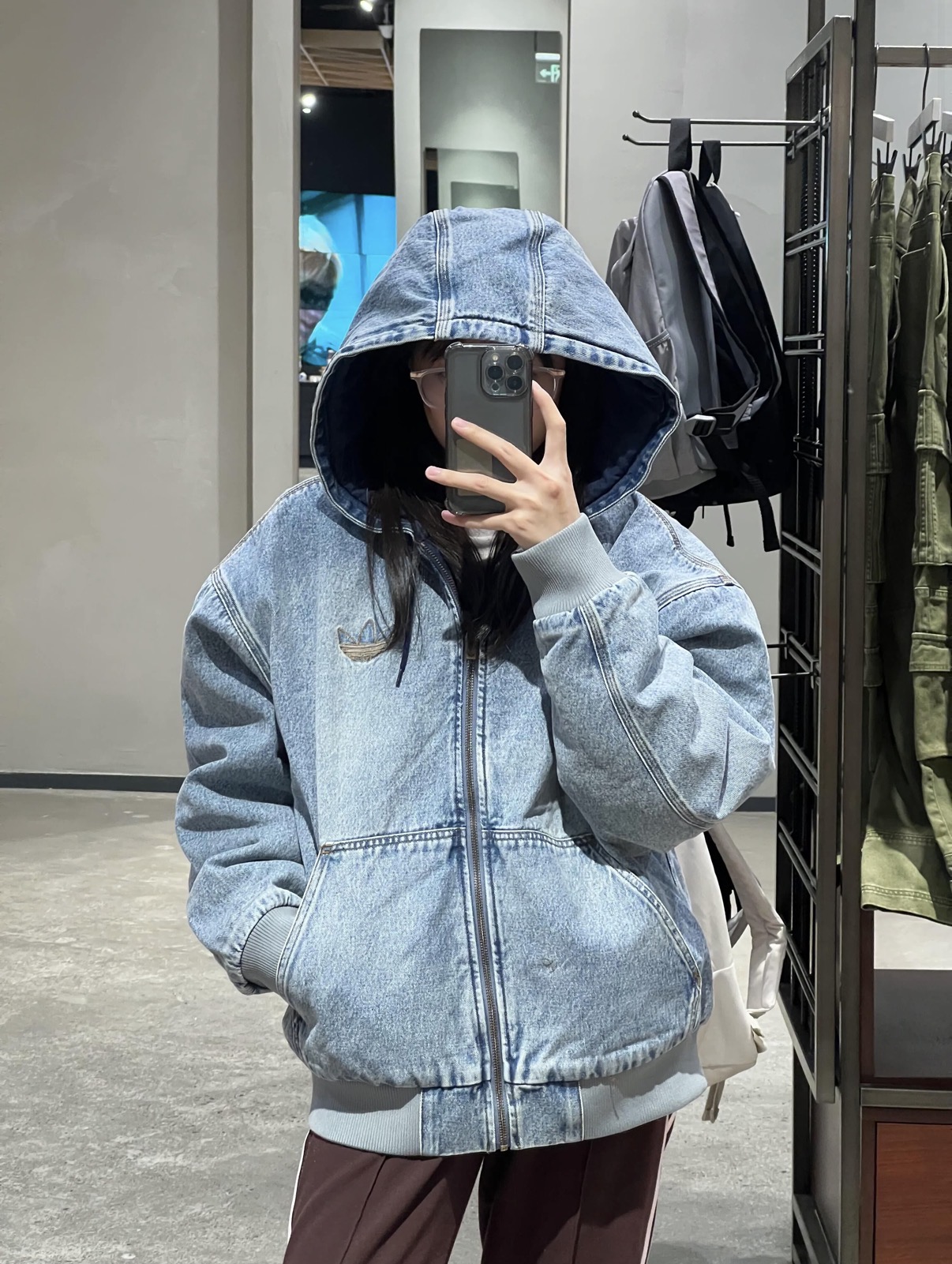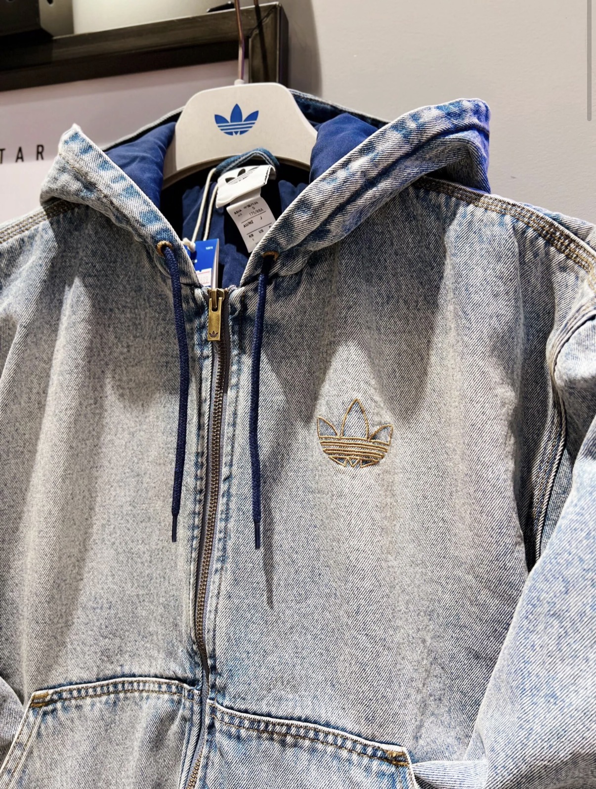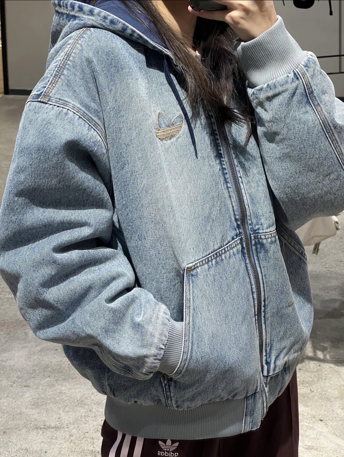 Adidas Originals Denim Padded Jacket 牛仔連帽外套 人造絨 丹寧 刷舊水洗 淺藍色 刺繡 厚磅 /預購