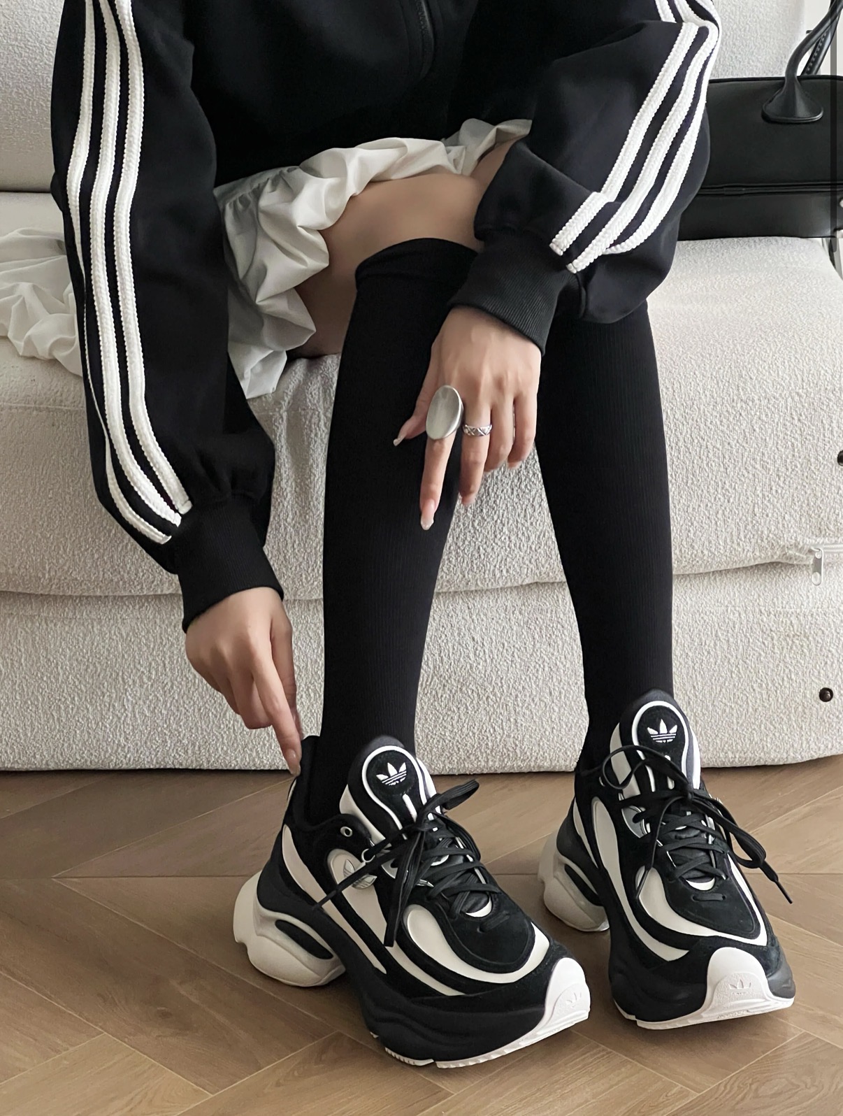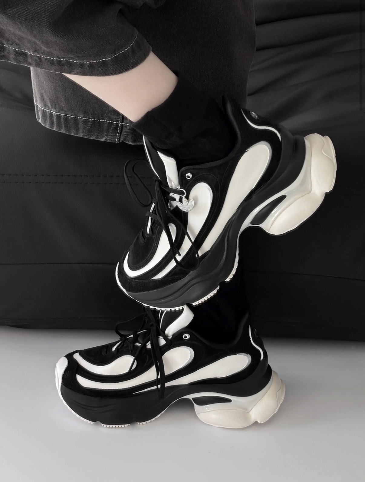 Adidas Originals Ozvenuz 黑白色 浮蝶鞋 皮革 厚底 復古 慢跑鞋 老爹鞋 HQ2679/預購