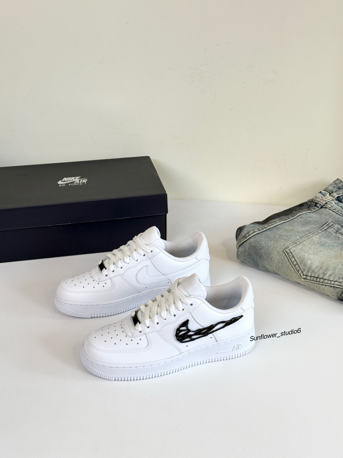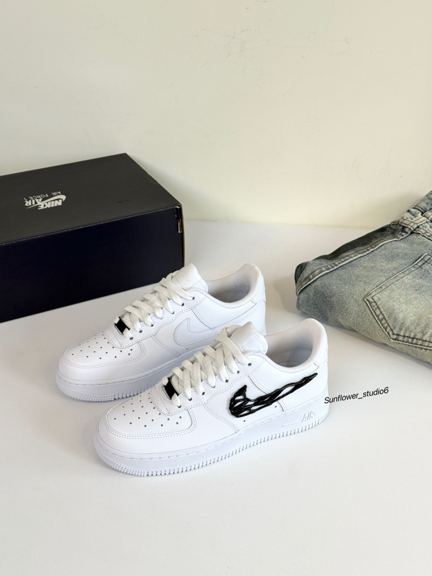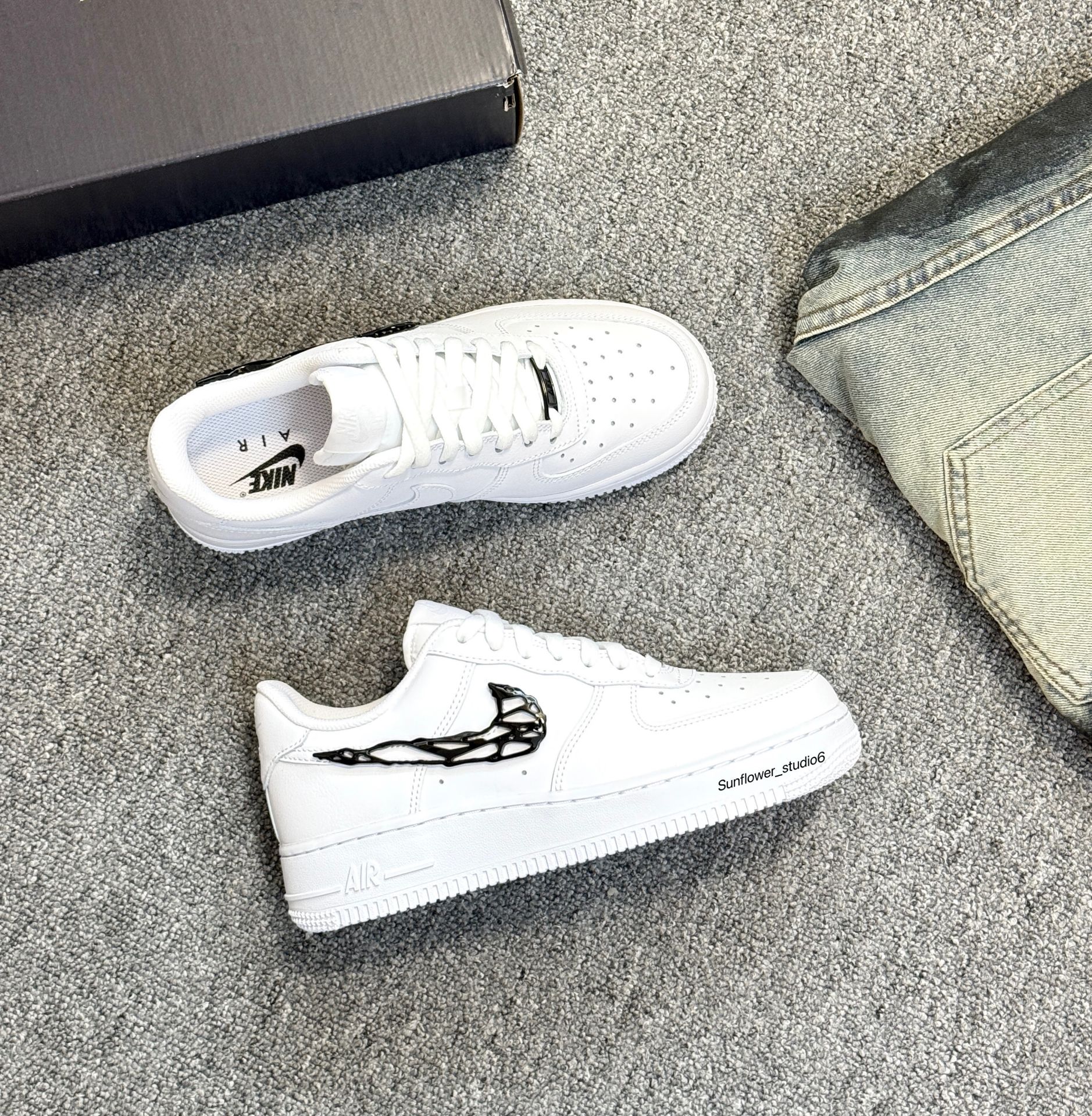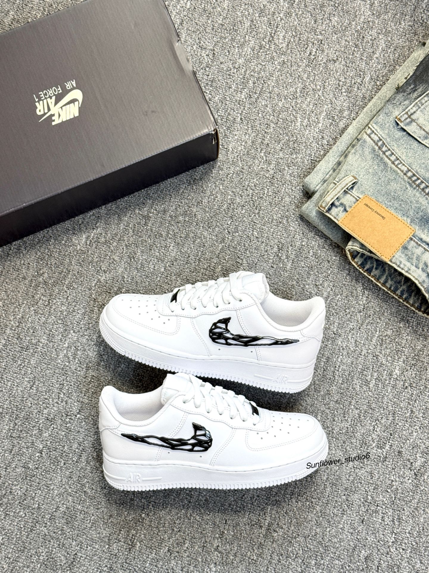 Nike Air Force 1 AF1 液態黑 猛毒 白黑色 白色 金屬勾 皮革 女款 IF1686-101/預購