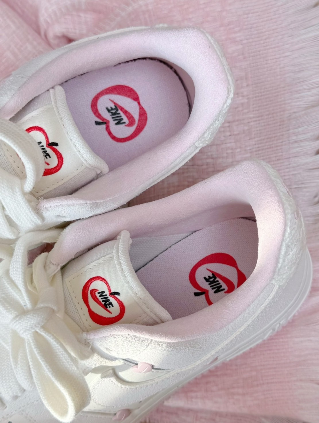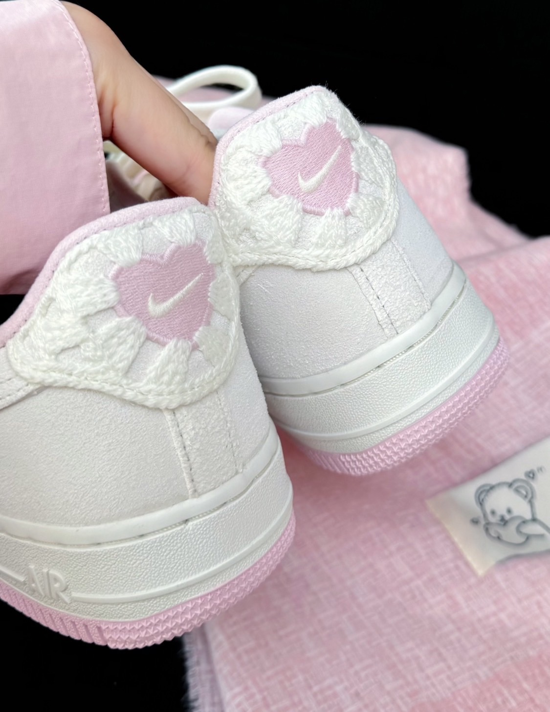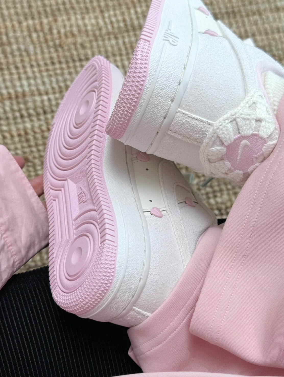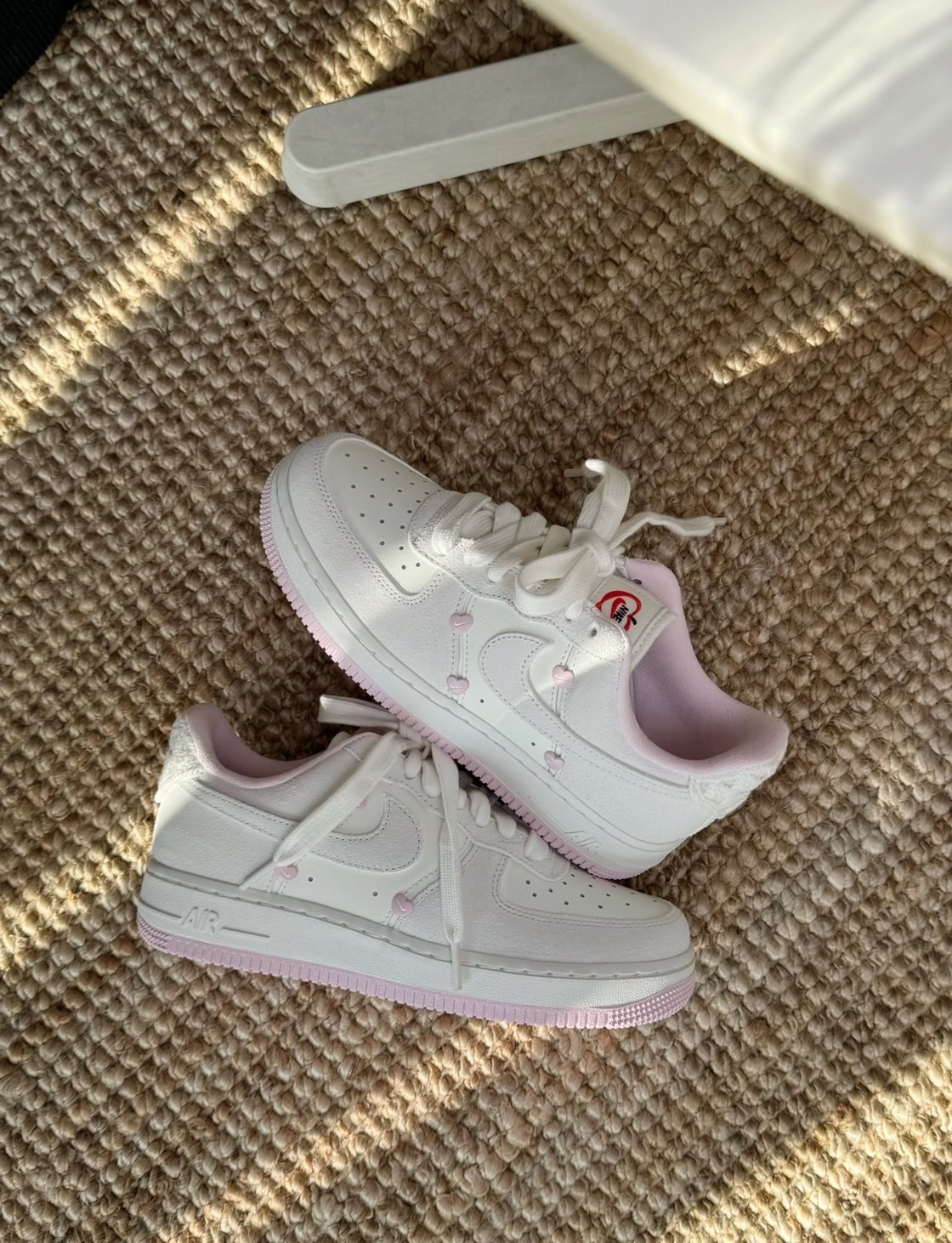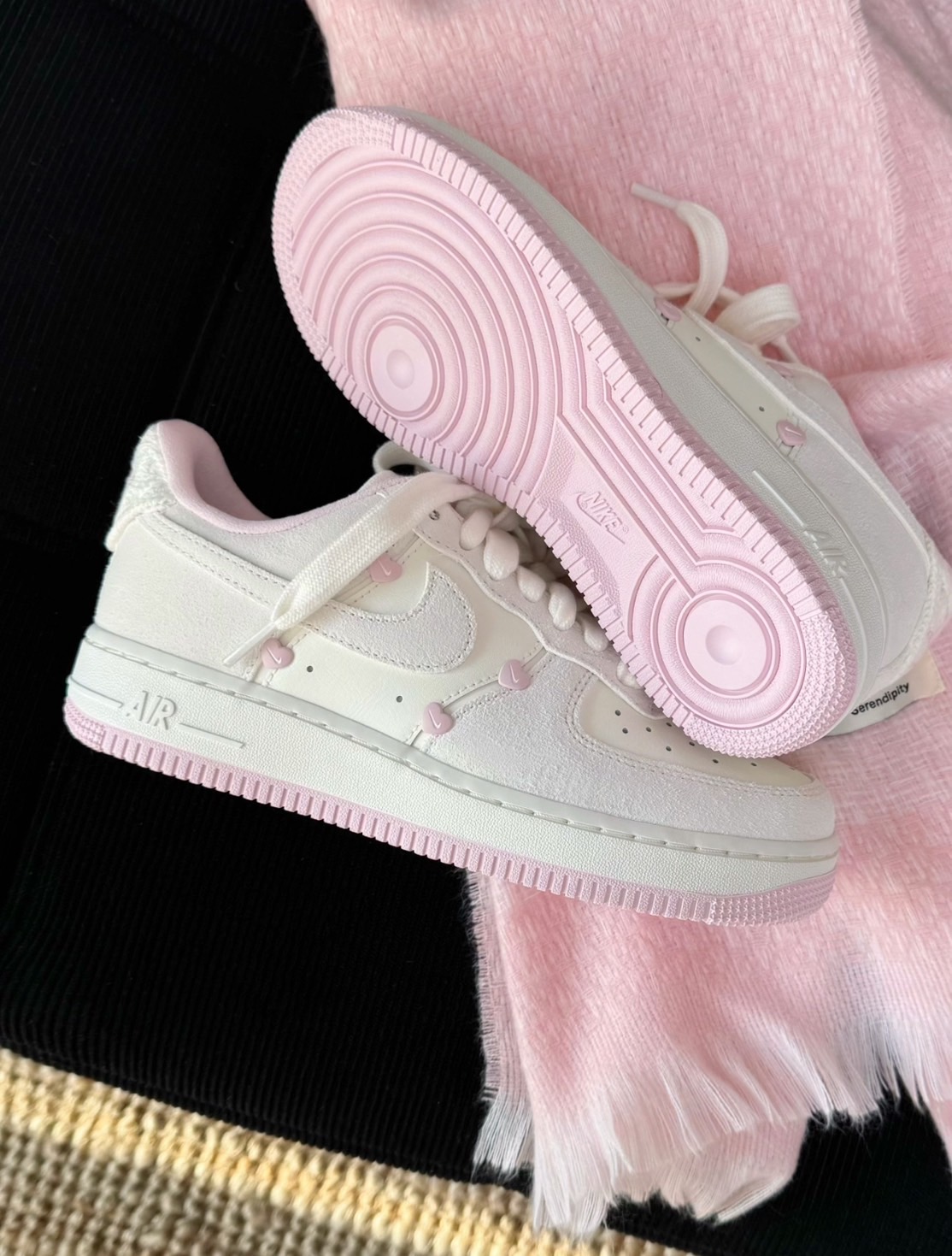 Nike Air Force 1 AF1 粉灰色 愛心 蘋果情人 麂皮 寬鞋帶 麻花編織 情人節限定 女款 HV5992-111/預購
