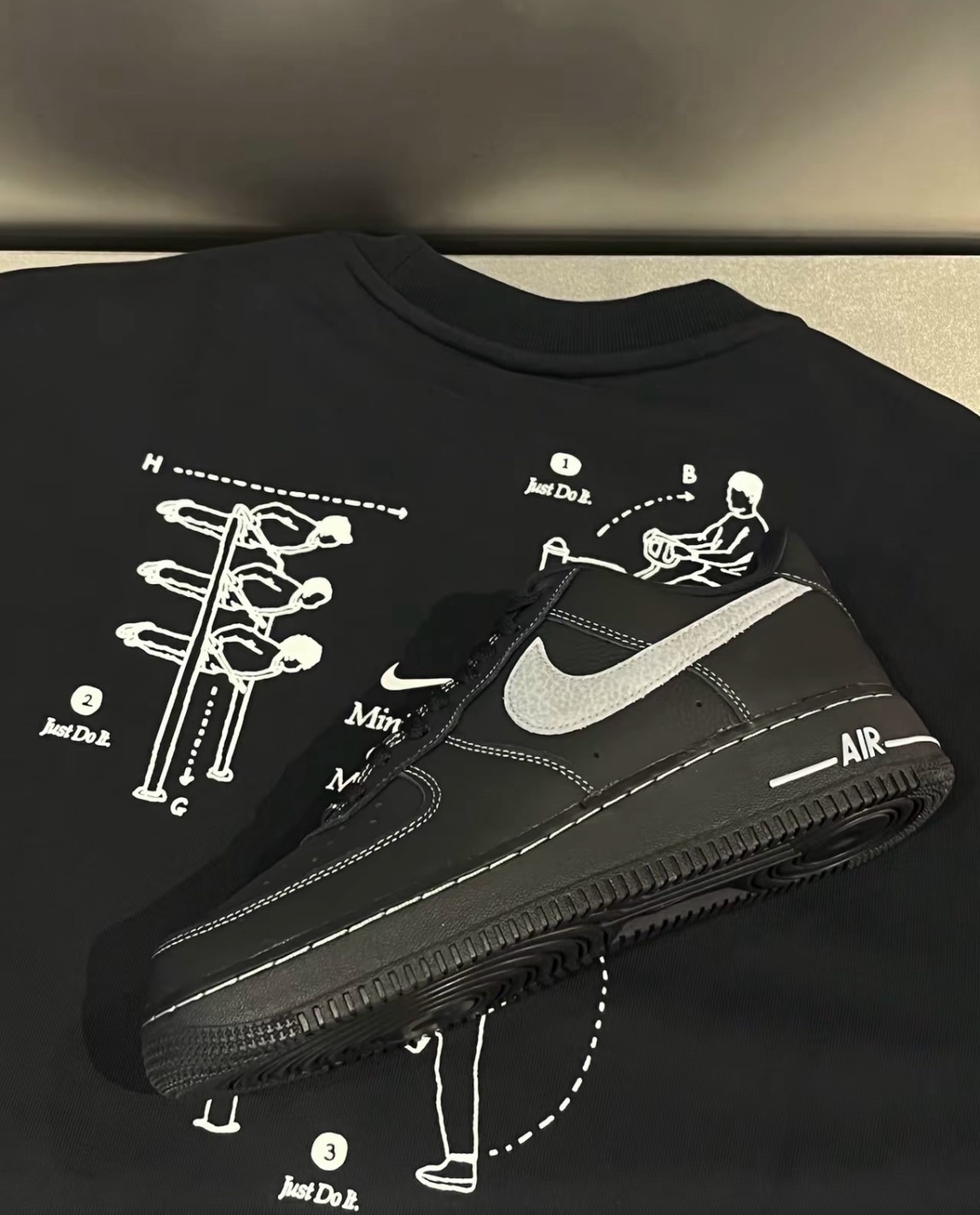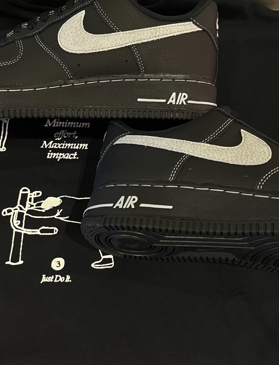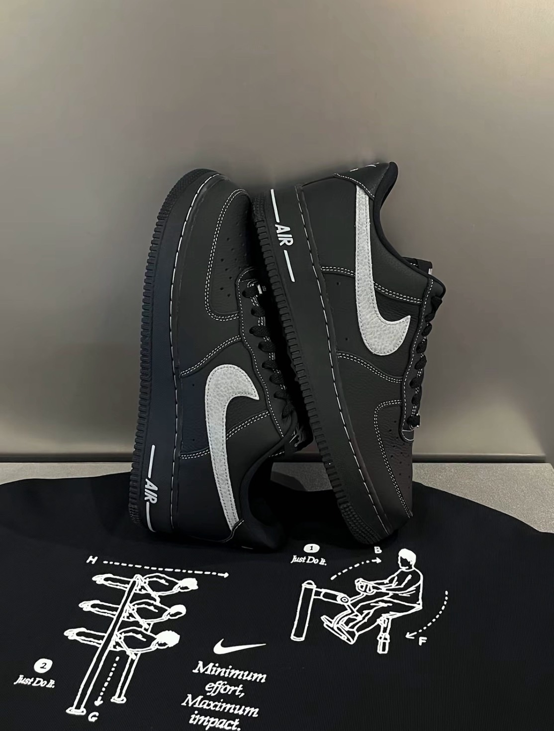 Nike Air Force 1 AF1 黑底外縫線 黑白色 黑色 黑武士 荔枝皮 外縫線 男女款 HQ2037-006/預購