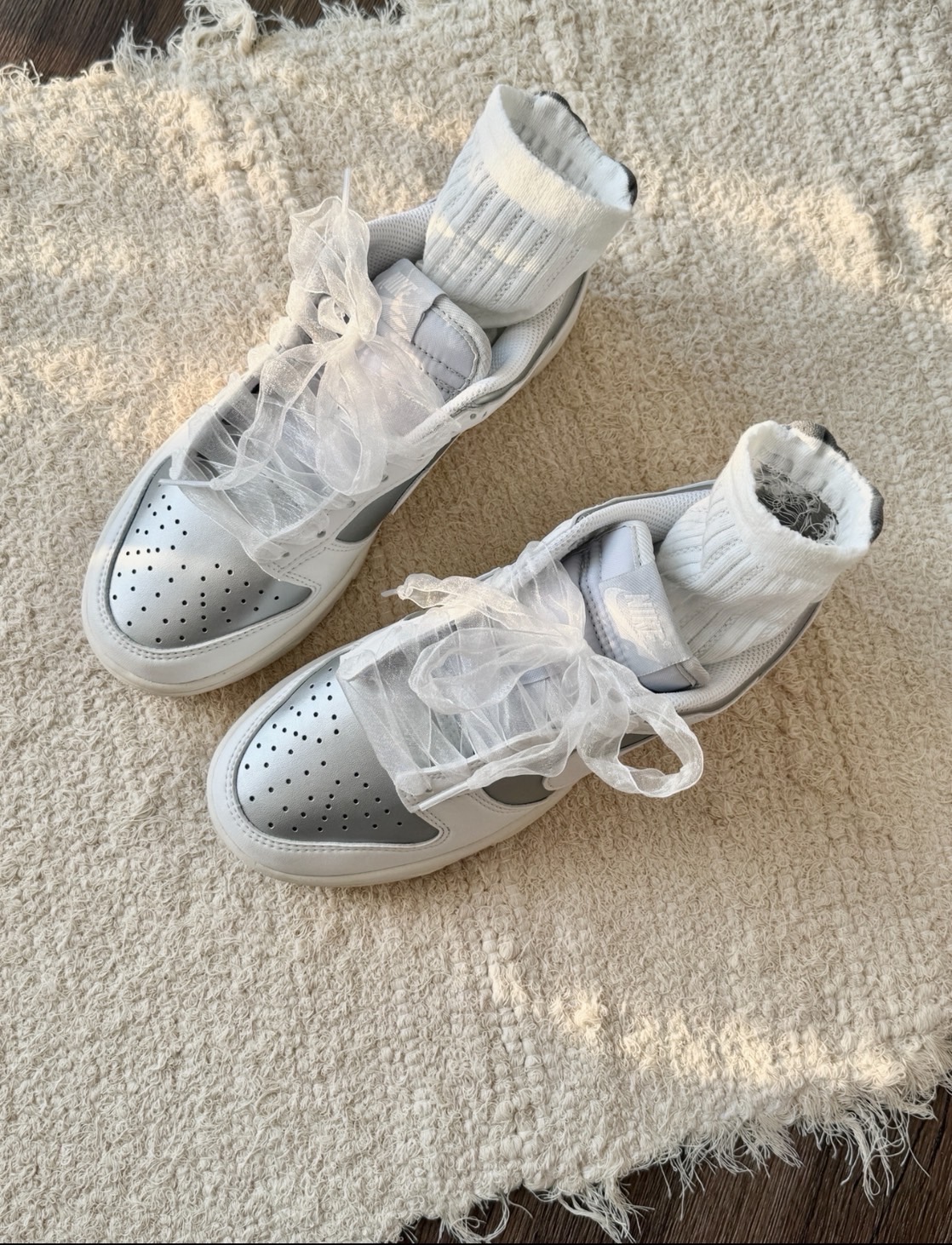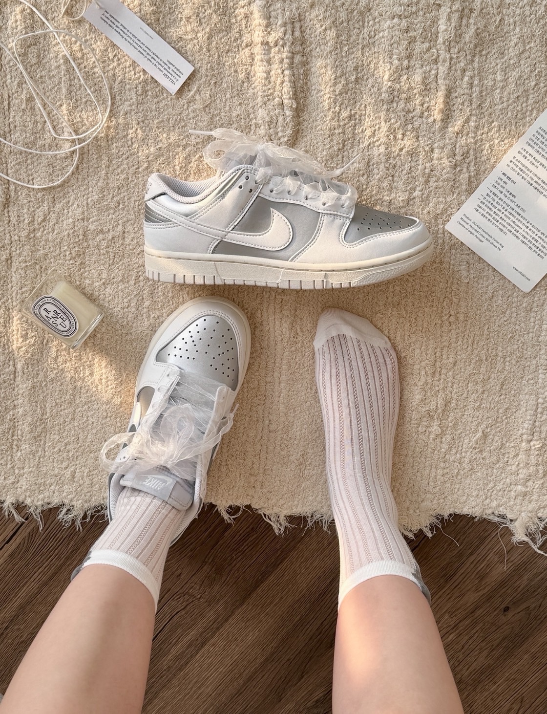 Nike Dunk Low 薄霧銀 白銀 金屬銀 網紗鞋帶 緞帶 Y2k 銀色 女鞋 IB7311-001/預購