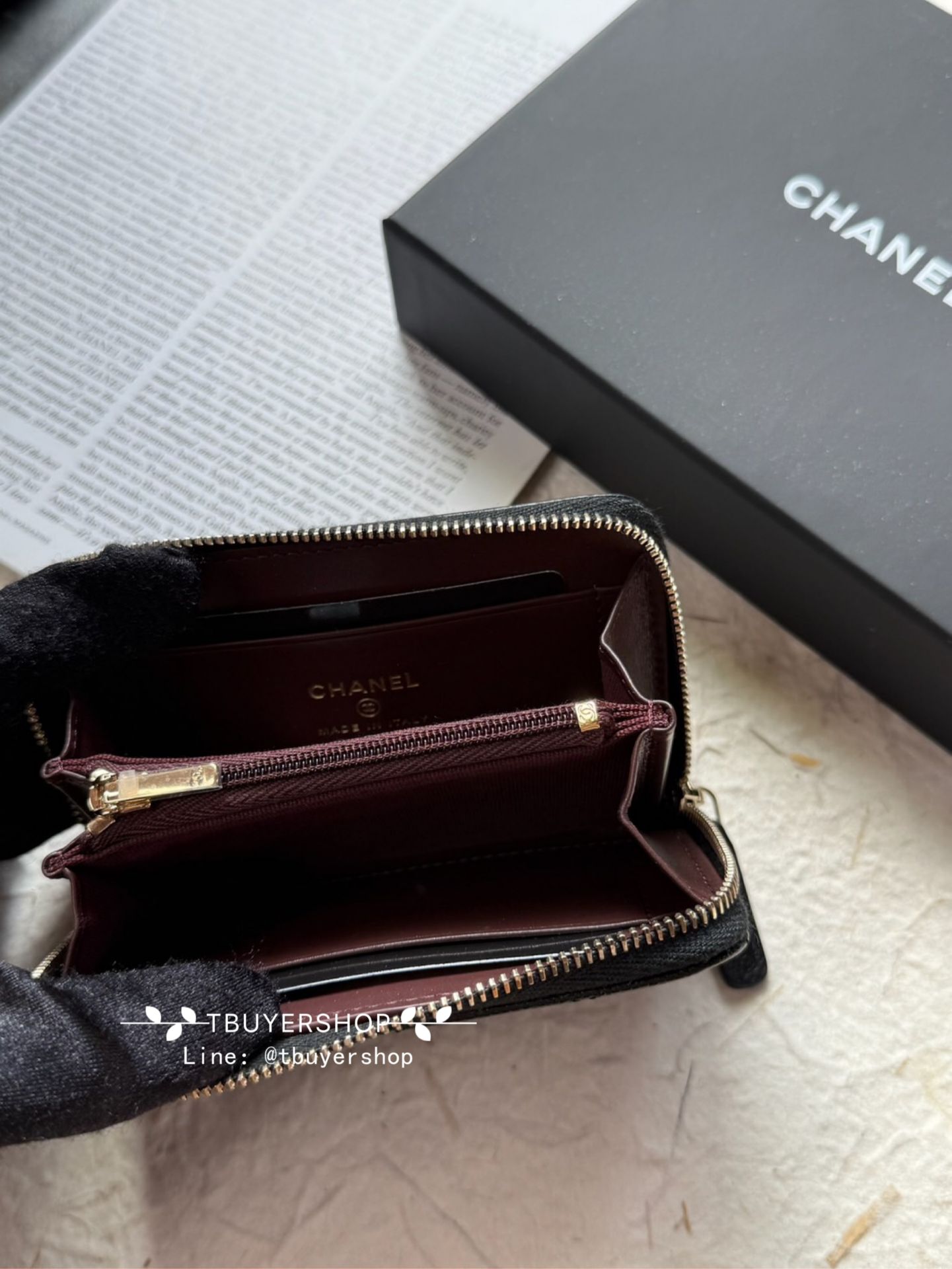 Chanel 經典Cf 黑金 荔枝皮 加大版拉鍊錢包/卡包