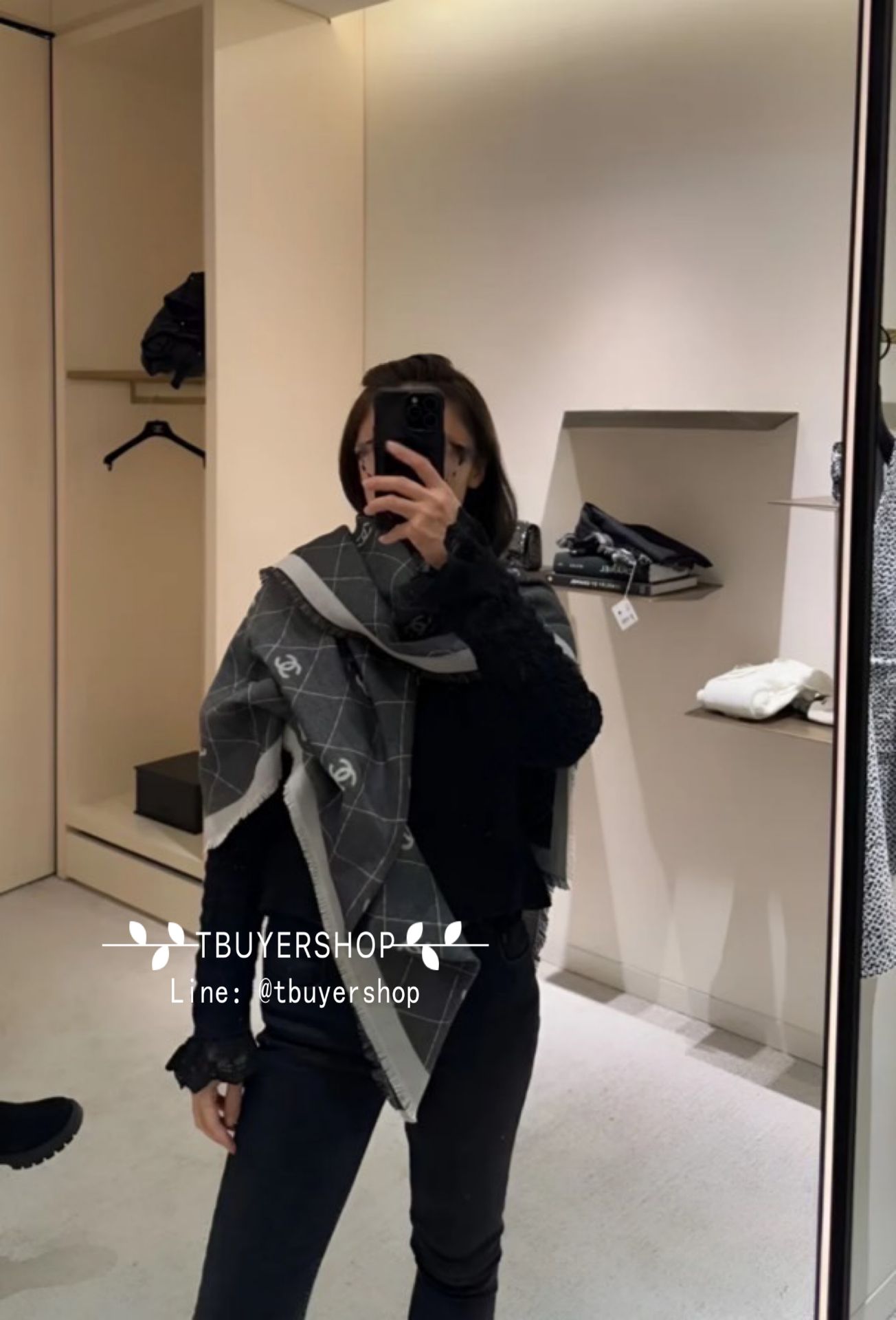 Chanel 26p 爆款🔥灰色滿版logo雙面圍巾披肩