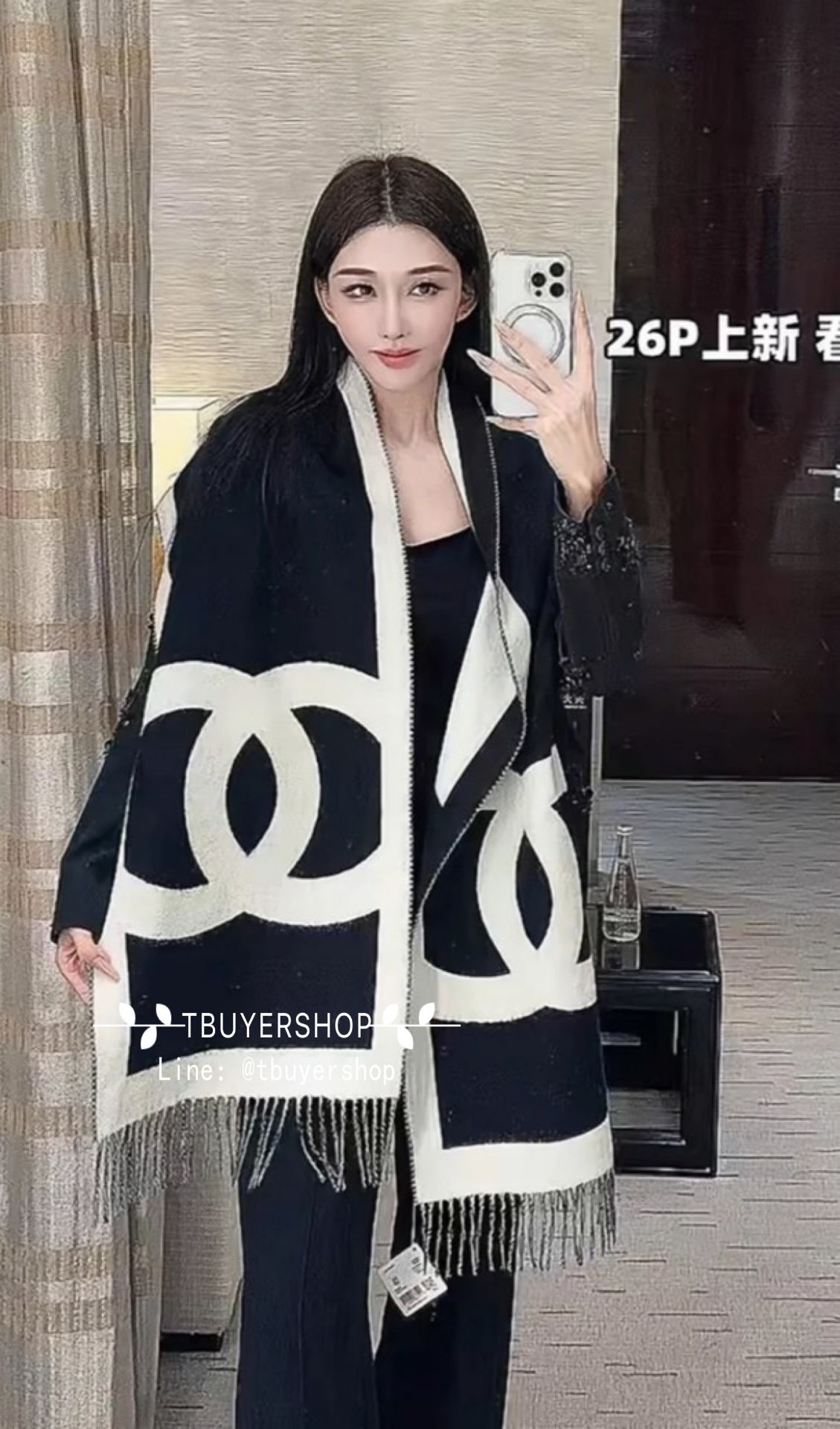 Chanel 26p 黑白 雙面圍巾