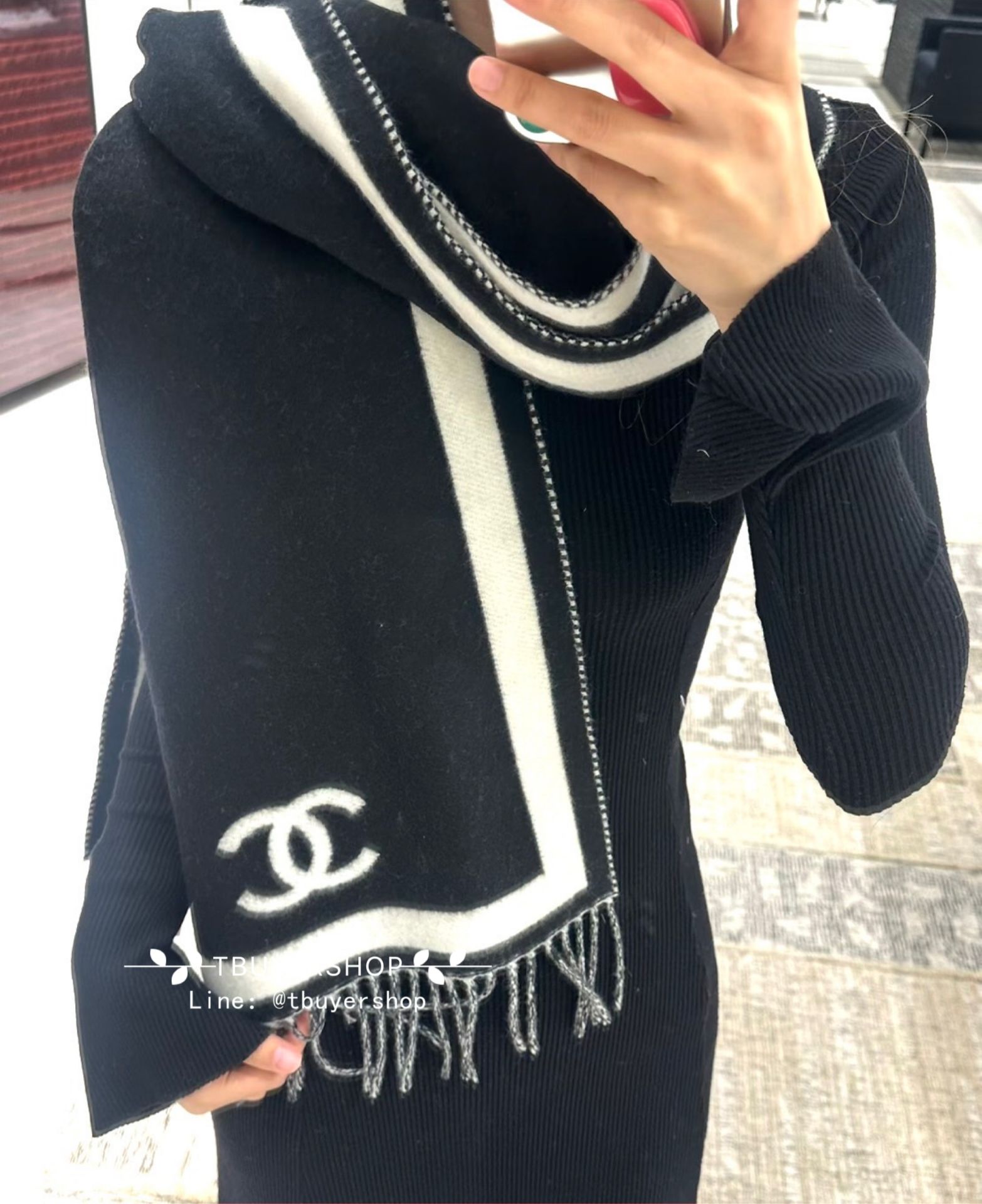 Chanel 26S 黑白 雙面圍巾🧣
