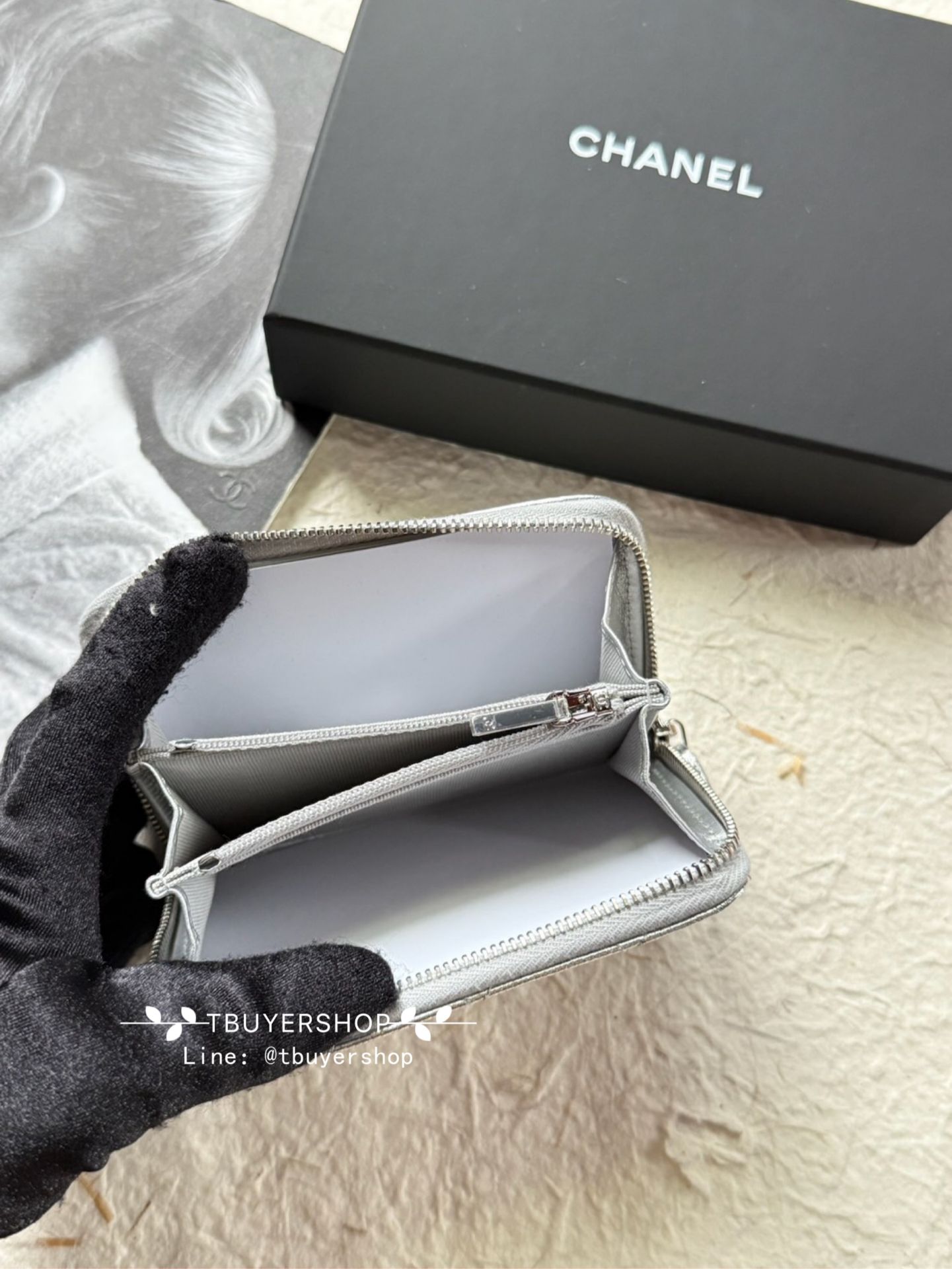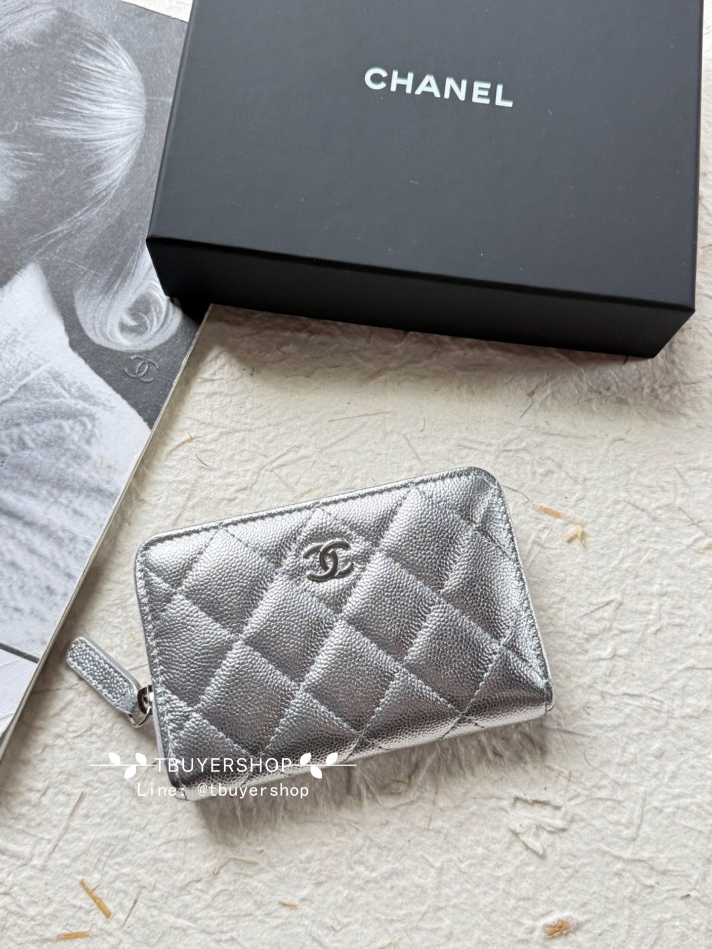 Chanel Cf 銀色 荔枝皮 加大版拉鍊錢包/卡包