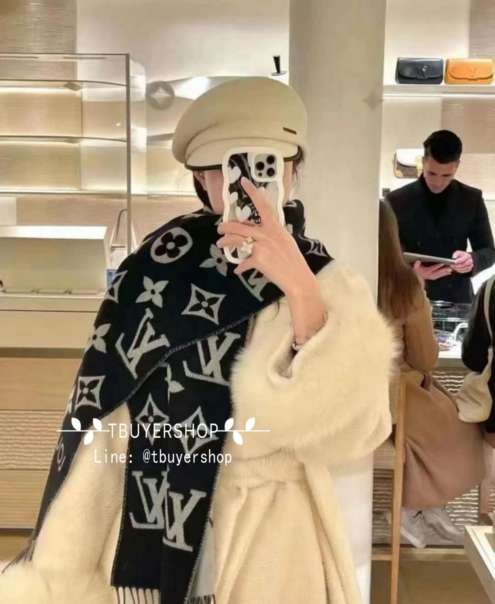 Lv Essential 黑白色 雙面老花圍巾 含盒子