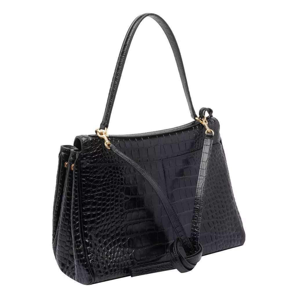 材質與細節外層選用鱷魚壓紋小牛皮,內裡採用納帕小羊皮襯裡,觸感細膩且耐用。