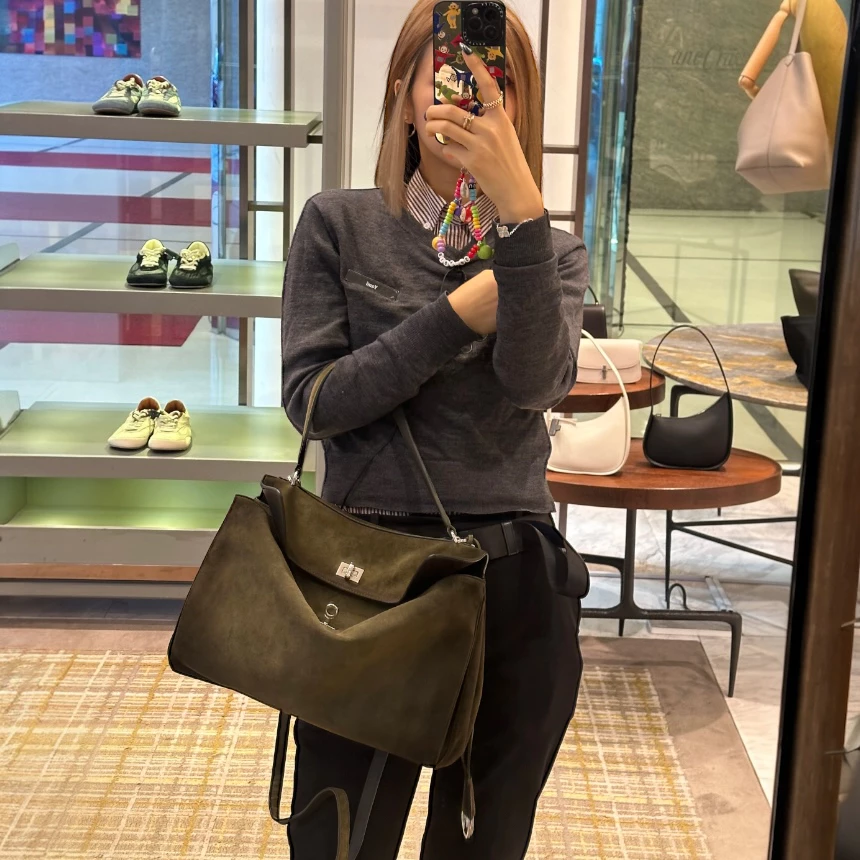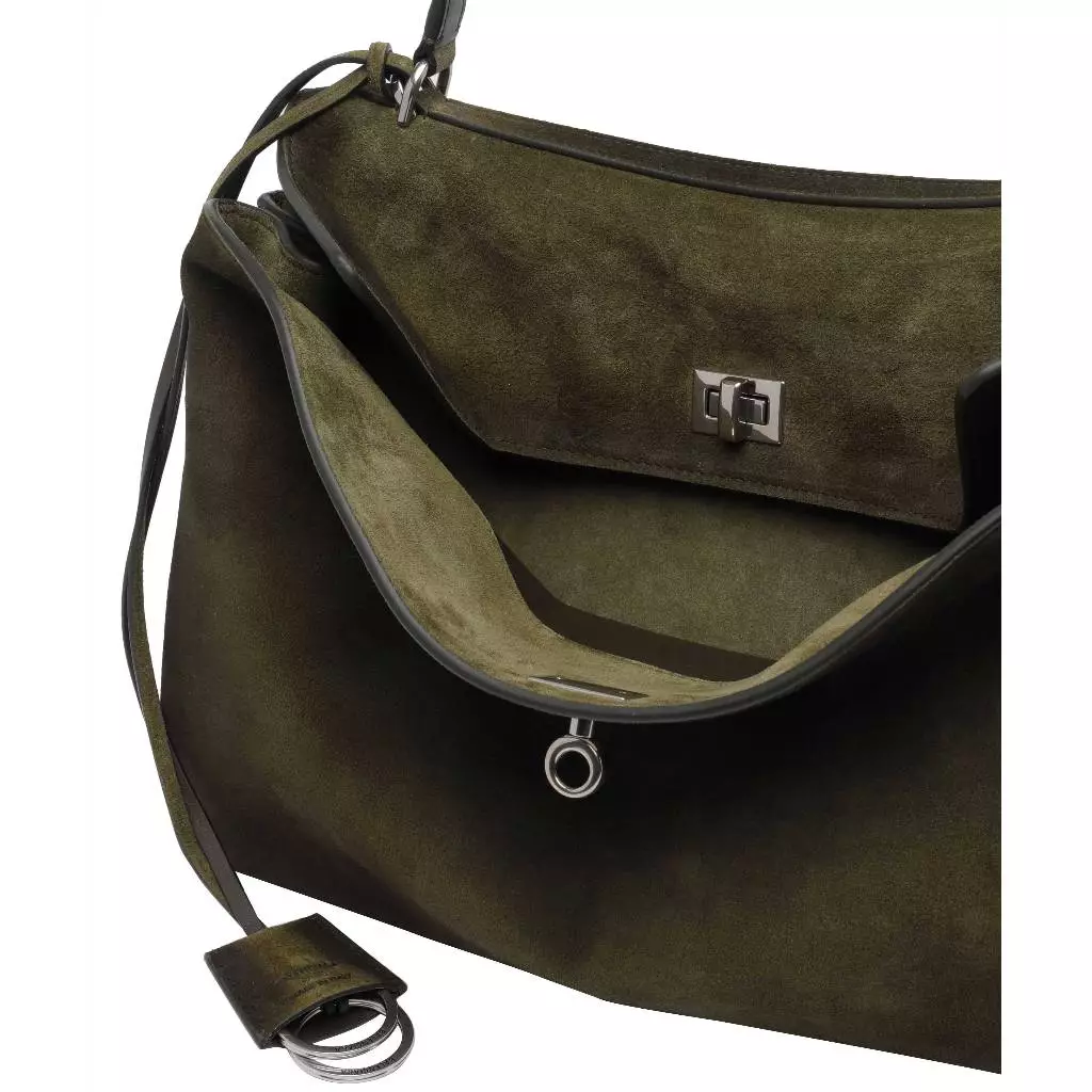 Balenciaga 789772 麂皮中款 Rodeo 包 卡其綠色/復古銀釦