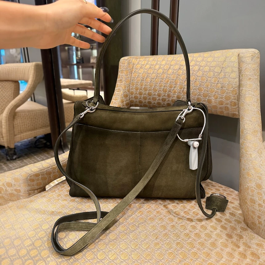 以蠟感麂皮小牛皮與光滑小牛皮拼接打造,