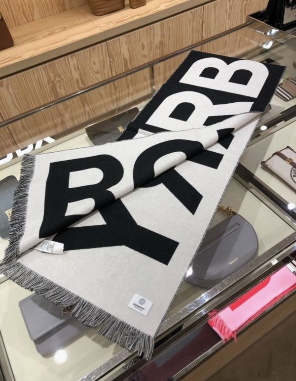 Burberry 80571471 徽標字母雙面羊毛緹花圍巾