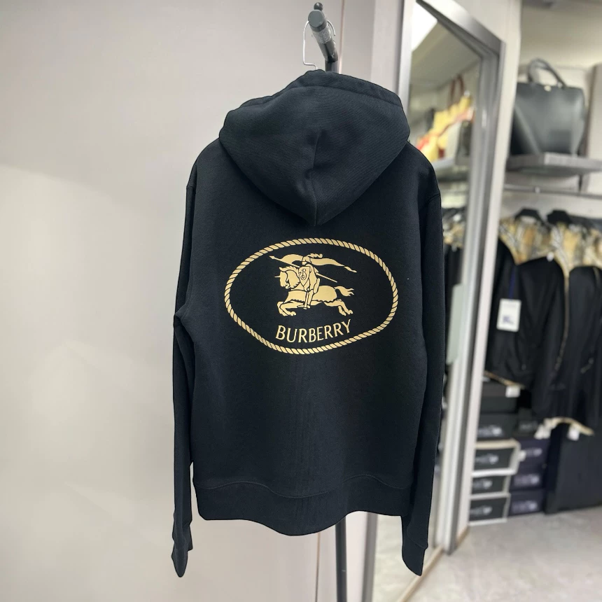 Burberry 81128071 男款 修身剪裁騎士印章連帽衫 黑色 S/M【新年限時特賣】