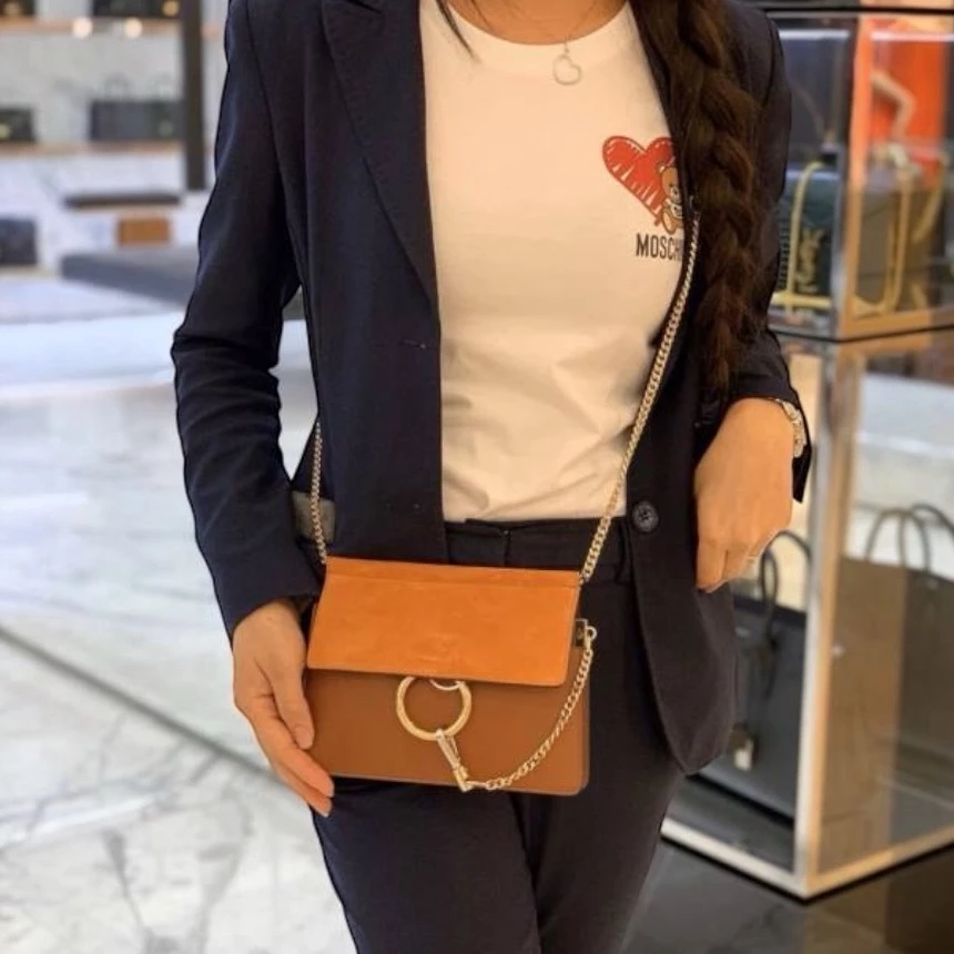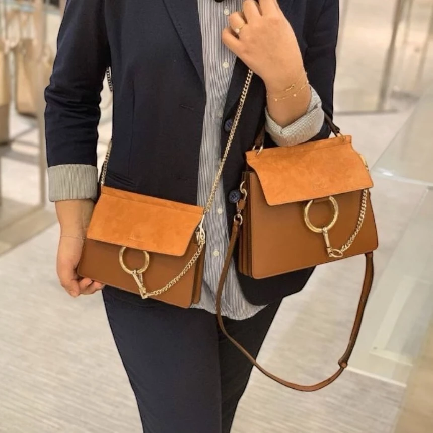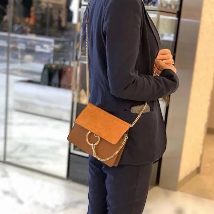 Chloe 小款 Faye 麂皮小牛皮金鍊斜背包