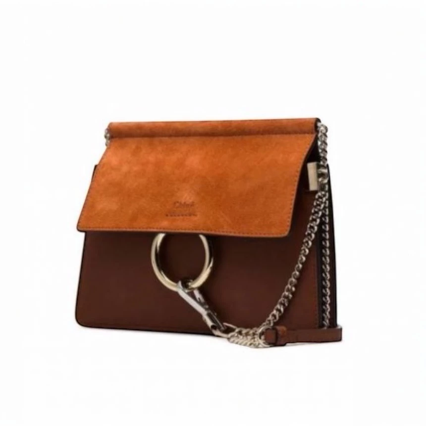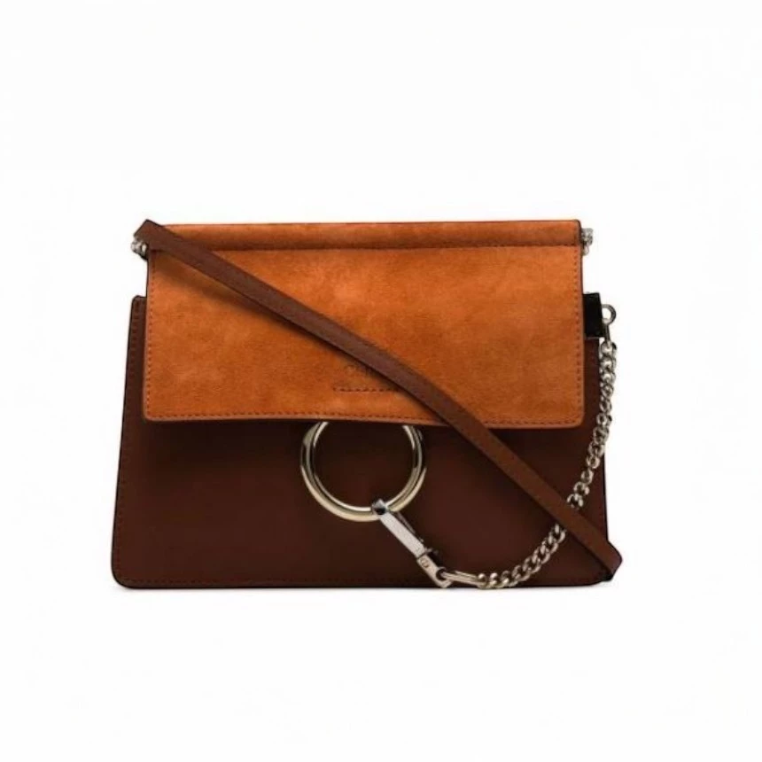 Chloe 小款 Faye 麂皮小牛皮金鍊斜背包 焦糖色
