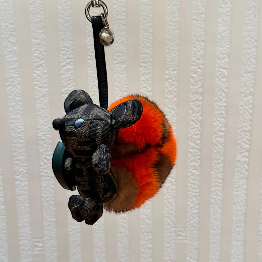 Fendi 7AS410 Furette 拼色貂毛 FF造型吊飾