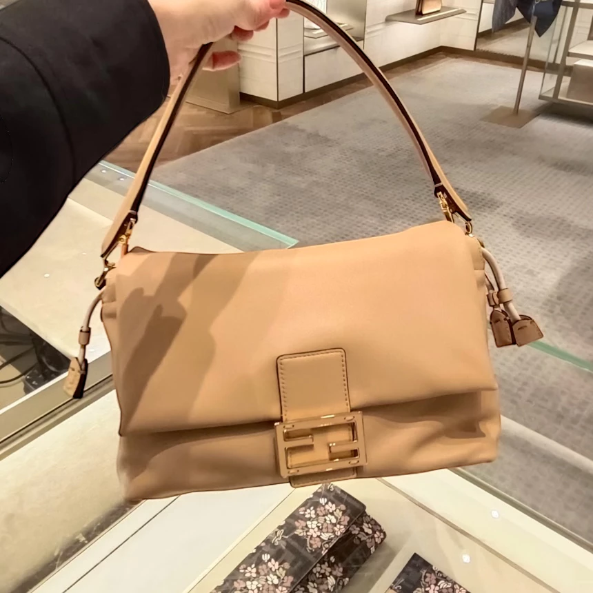 Fendi 8BR834 大款納帕軟皮 Mamma Baguette 貝貴包 奶茶色